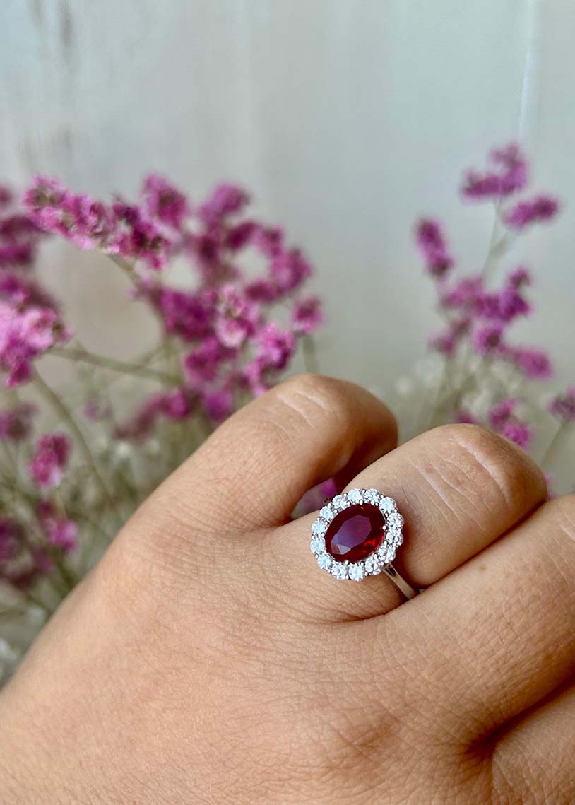 L'anello regolabile Elizabeth unisce eleganza e versatilità con il suo design ispirato allo stile principessa. La pietra rossa centrale dona un tocco di raffinatezza, mentre la finitura in rodio garantisce una brillantezza duratura e una protezione contro l’ossidazione. Perfetto per chi cerca un gioiello sofisticato e adattabile a ogni misura.
