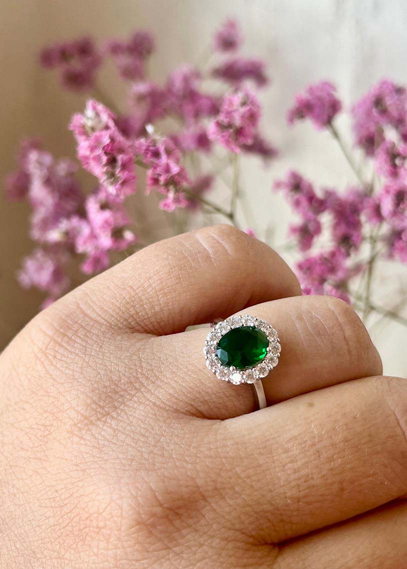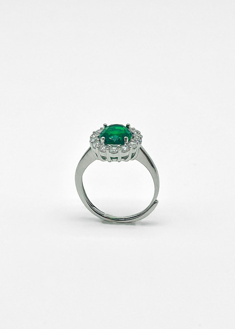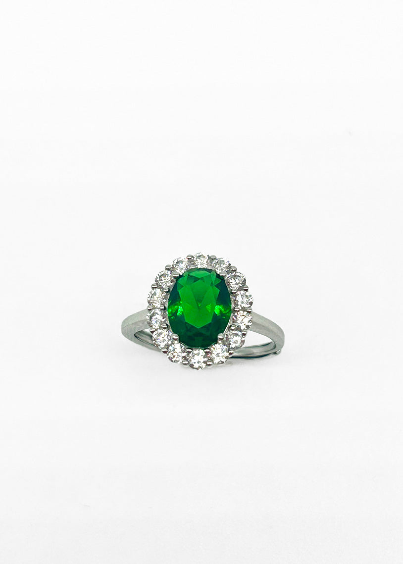 L'anello regolabile Victoria unisce eleganza e versatilità, con una raffinata pietra verde che cattura lo sguardo. La finitura in rodio galvanico garantisce resistenza e brillantezza nel tempo, rendendolo perfetto per chi cerca un gioiello sofisticato e adattabile a ogni misura. Ideale per chi desidera un tocco di colore prezioso con un design curato nei dettagli.