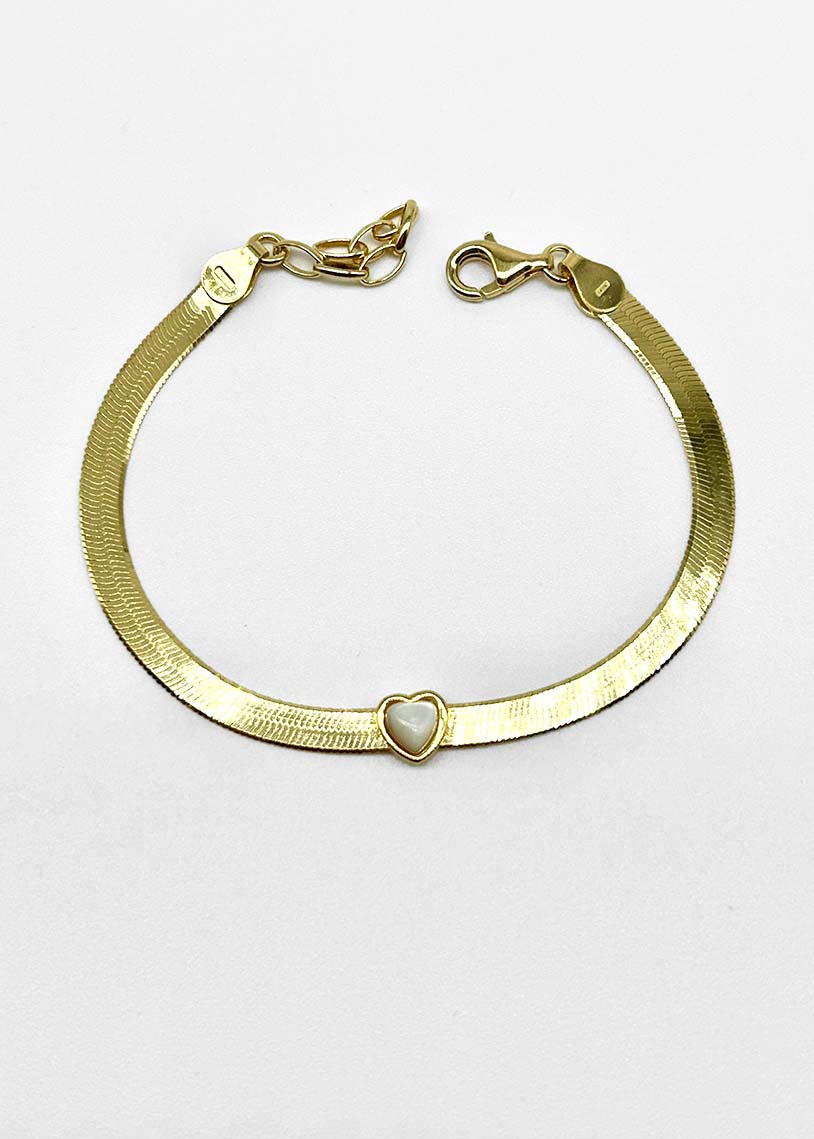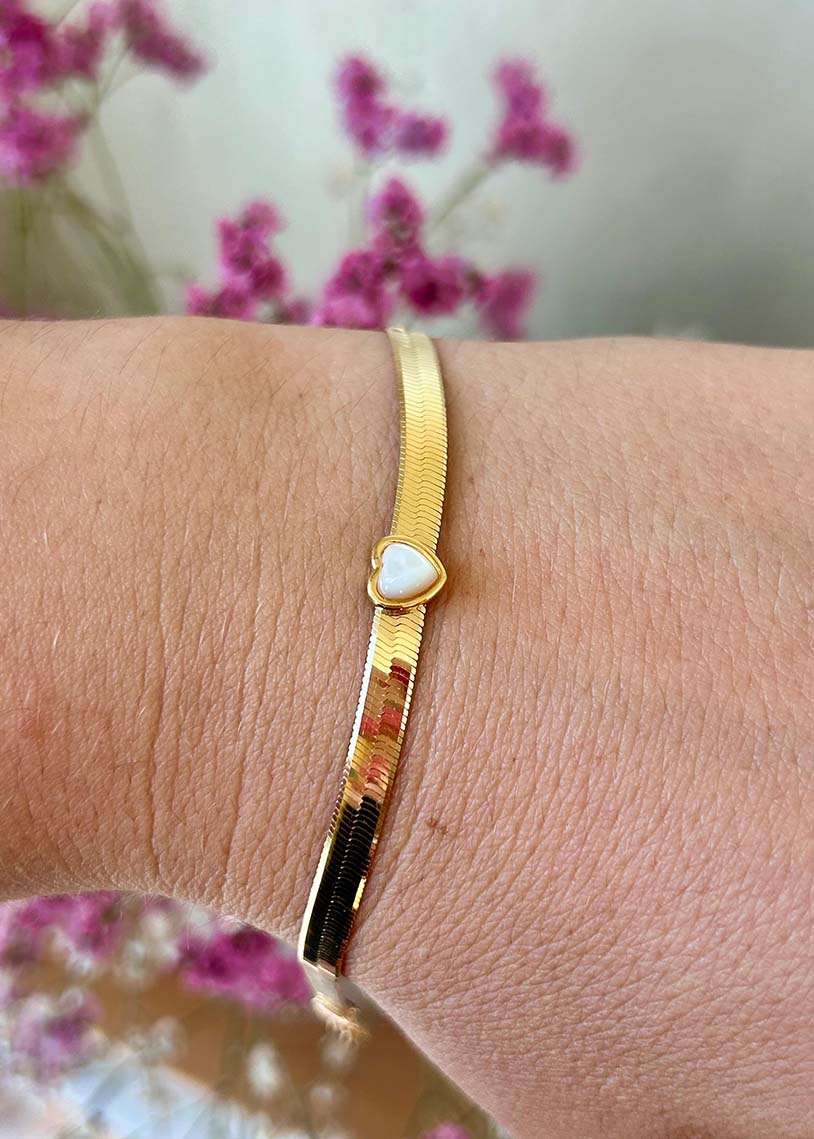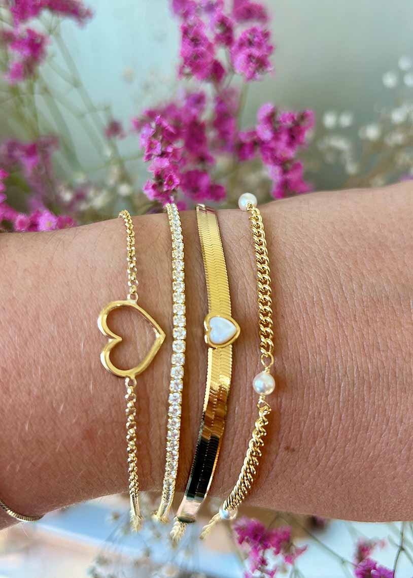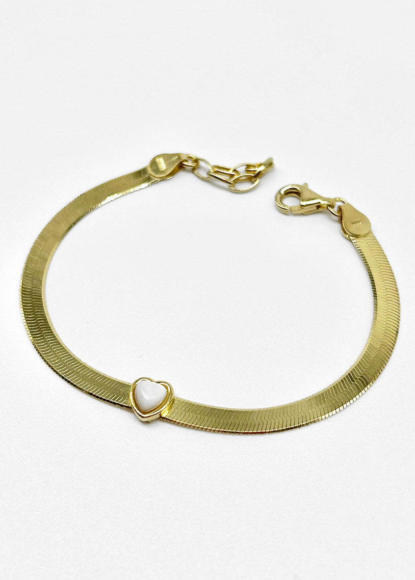 Atene è un braccialetto sottile e raffinato, impreziosito da una pietra bianca a forma di cuore che ne conferisce un tocco di delicatezza e femminilità. La finitura in galvanica dorata aggiunge eleganza e resistenza, garantendo una lunga durata nel tempo. Questo gioiello è ideale per chi cerca un accessorio discreto ma significativo, capace di valorizzare ogni look con un dettaglio sofisticato e romantico. Perfetto per occasioni speciali o per l’uso quotidiano, Atene unisce stile e qualità in un design essenziale e contemporaneo.