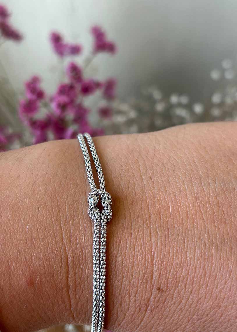 Nodo White è un braccialetto distintivo caratterizzato da un nodo che simboleggia legami profondi di affetto, unione e amicizia. La sua finitura in galvanica rodio conferisce al gioiello un’eleganza duratura e una resistenza superiore, ideale per chi desidera un accessorio prezioso dal valore simbolico.