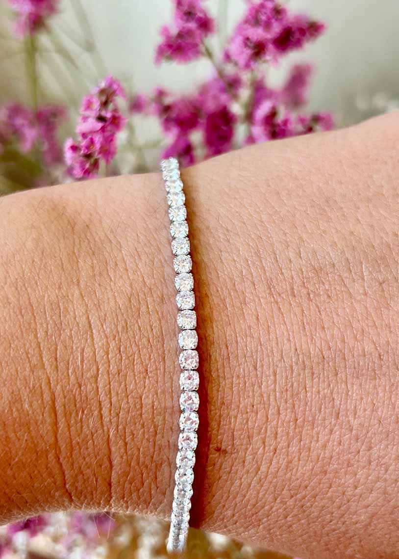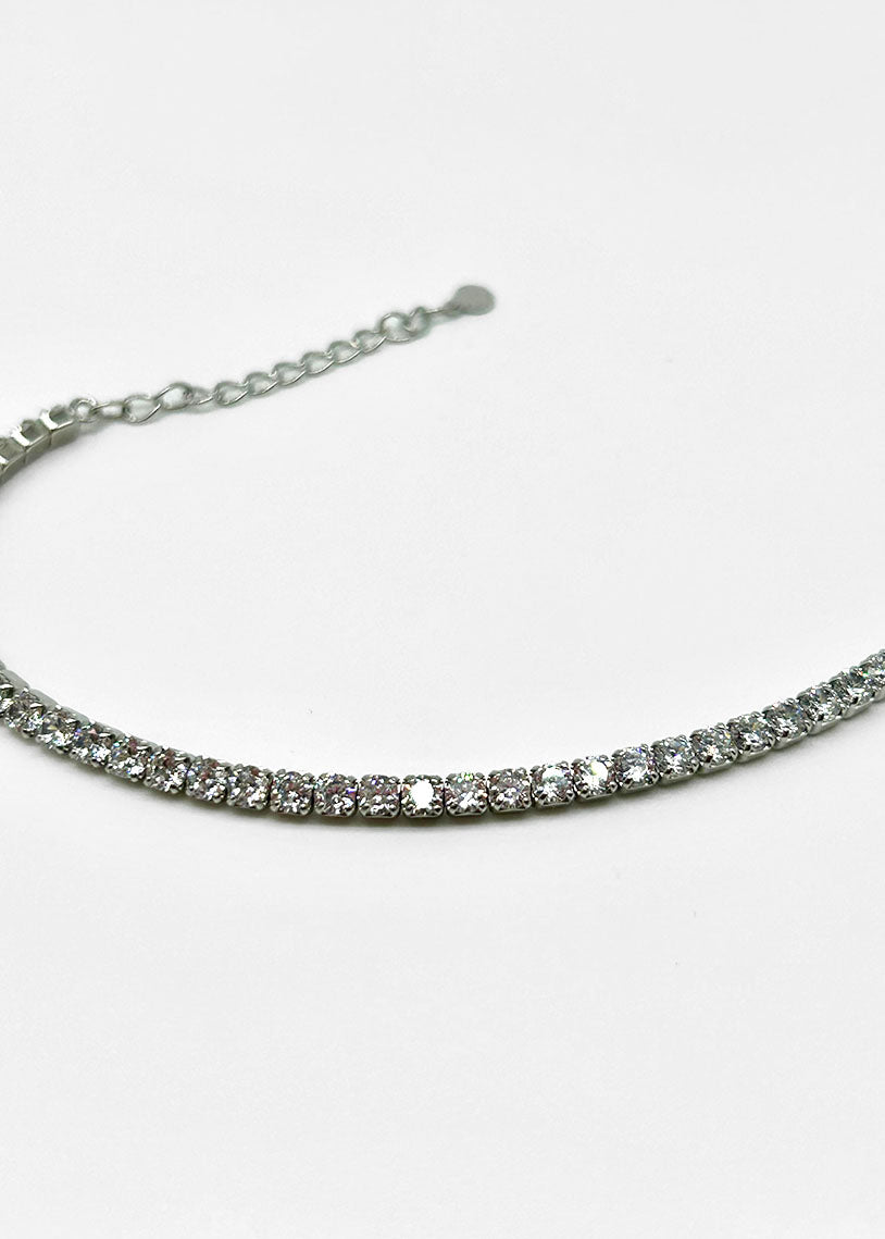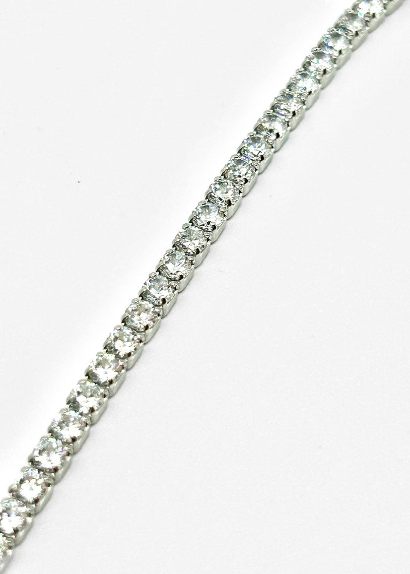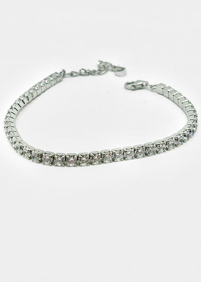 Tennis White è un braccialetto raffinato e di classe, arricchito da cubic zirconia di elevata qualità e da una pregiata galvanica in rodio che ne amplifica la luminosità. La cura nel design e la finitura impeccabile lo rendono un gioiello ideale per chi desidera un accessorio elegante, capace di impreziosire ogni look con una luce sobria ma distintiva. L’uso di materiali selezionati garantisce resistenza e comfort, perfetto sia per l’uso quotidiano sia per momenti speciali.