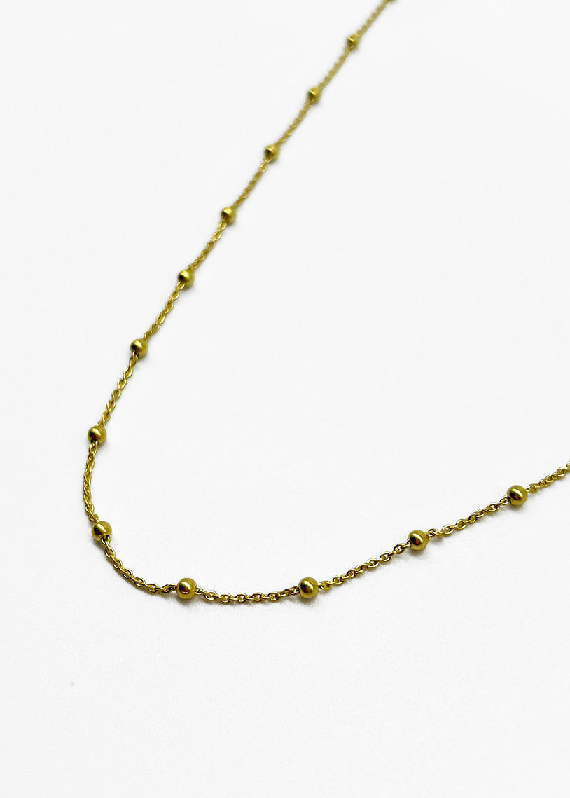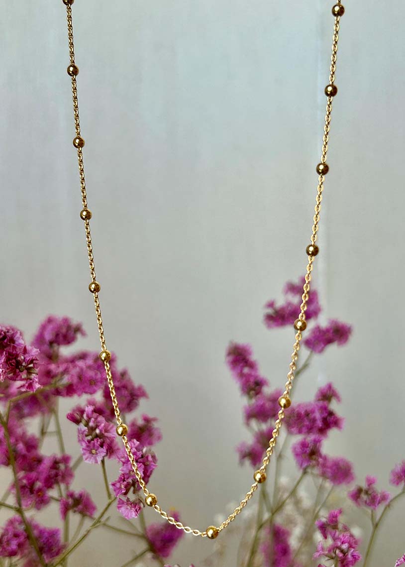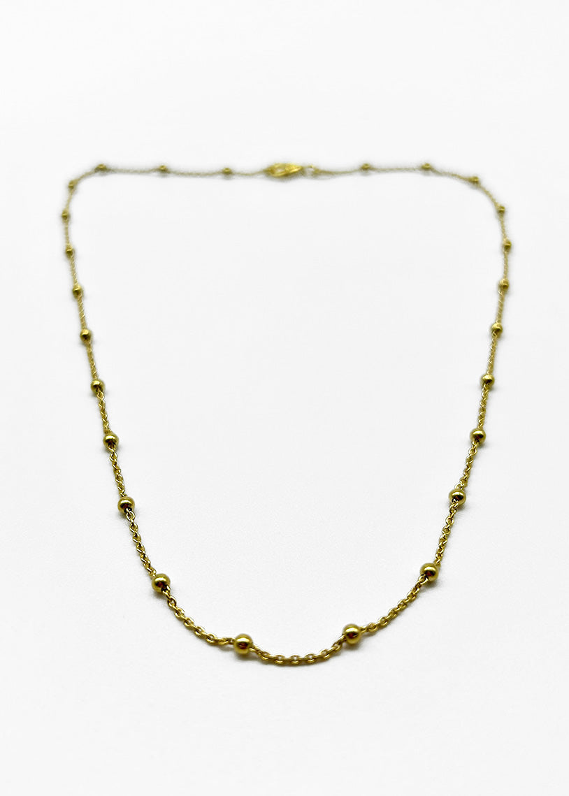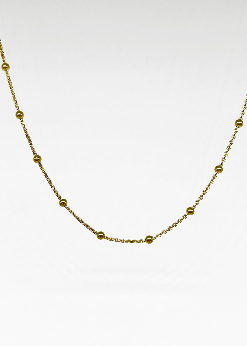 Dafne è una catena in argento 925 con maglia rolò, impreziosita da delicate sfere decorative con finitura galvanica oro che conferiscono un tocco di eleganza discreta. Questo gioiello combina materiali di alta qualità con un design sofisticato, ideale per chi cerca un accessorio versatile e raffinato. Perfetta da indossare da sola o abbinata ad altri pezzi, Dafne valorizza ogni look con un’eleganza senza tempo, garantendo durata e brillantezza nel tempo grazie alla sua lavorazione accurata.