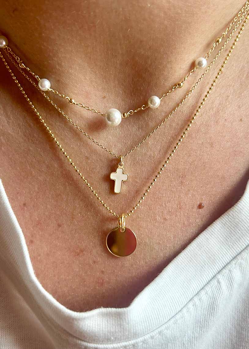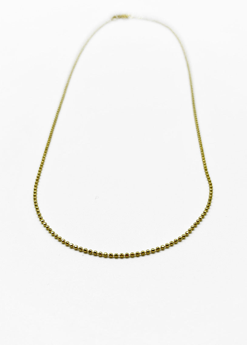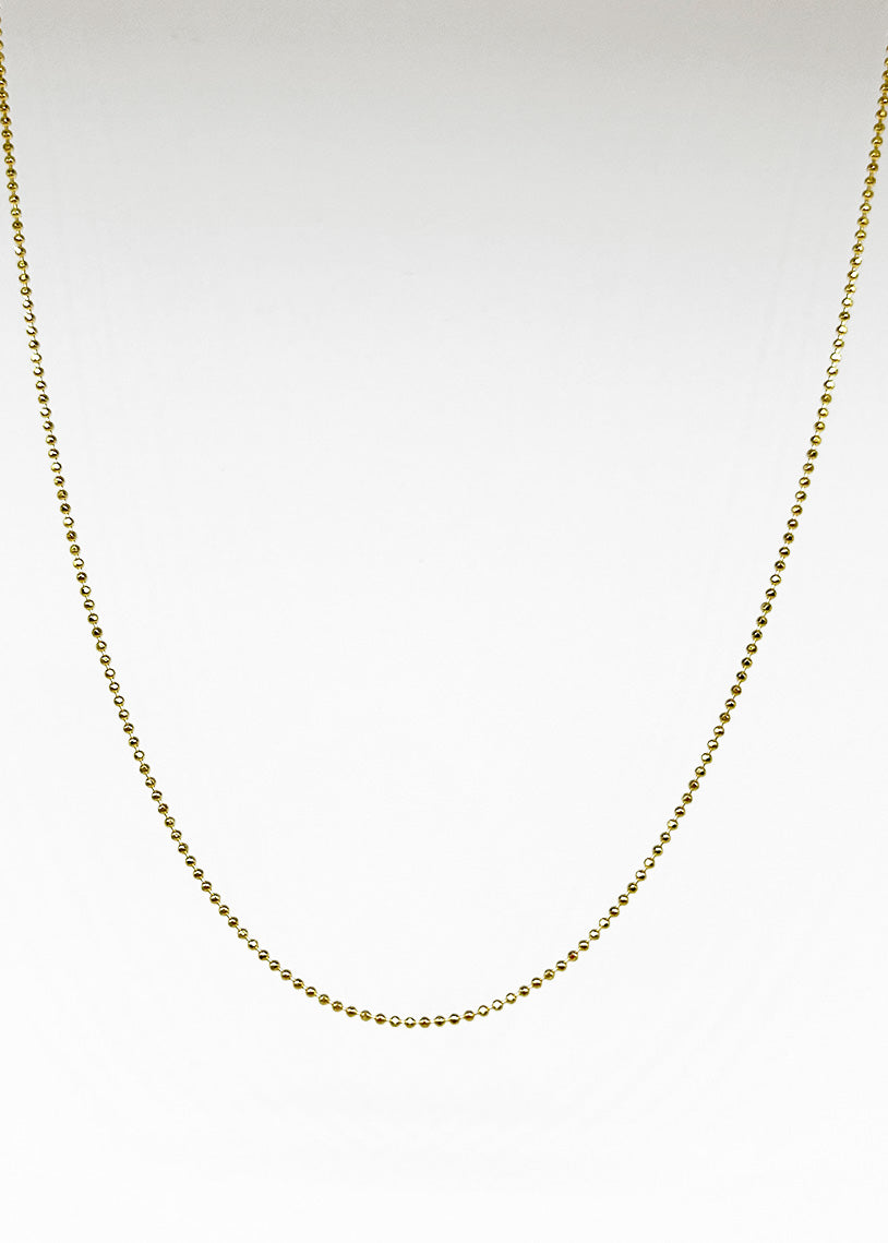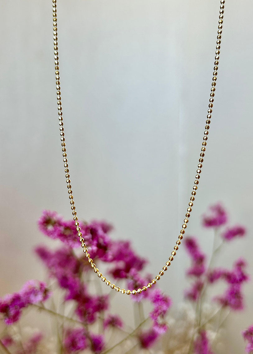La catena Demetra in argento 925 con galvanica gold presenta una raffinata lavorazione a palline diamantate, che conferisce un'eleganza discreta e una brillantezza duratura. Perfetta per chi cerca un gioiello versatile e di alta qualità, capace di valorizzare ogni look con un tocco di classe senza tempo.