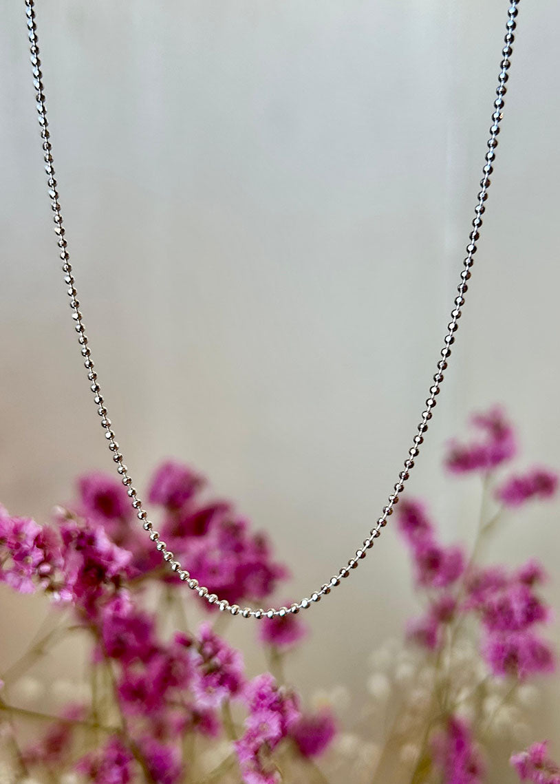 La catena Demetra White in argento 925 con galvanica rodio è caratterizzata da una finitura a palline diamantate che esalta la luminosità e la resistenza del gioiello. Ideale per chi desidera un accessorio elegante e moderno, garantisce durata e brillantezza nel tempo, valorizzando ogni outfit con un tocco sofisticato e raffinato.