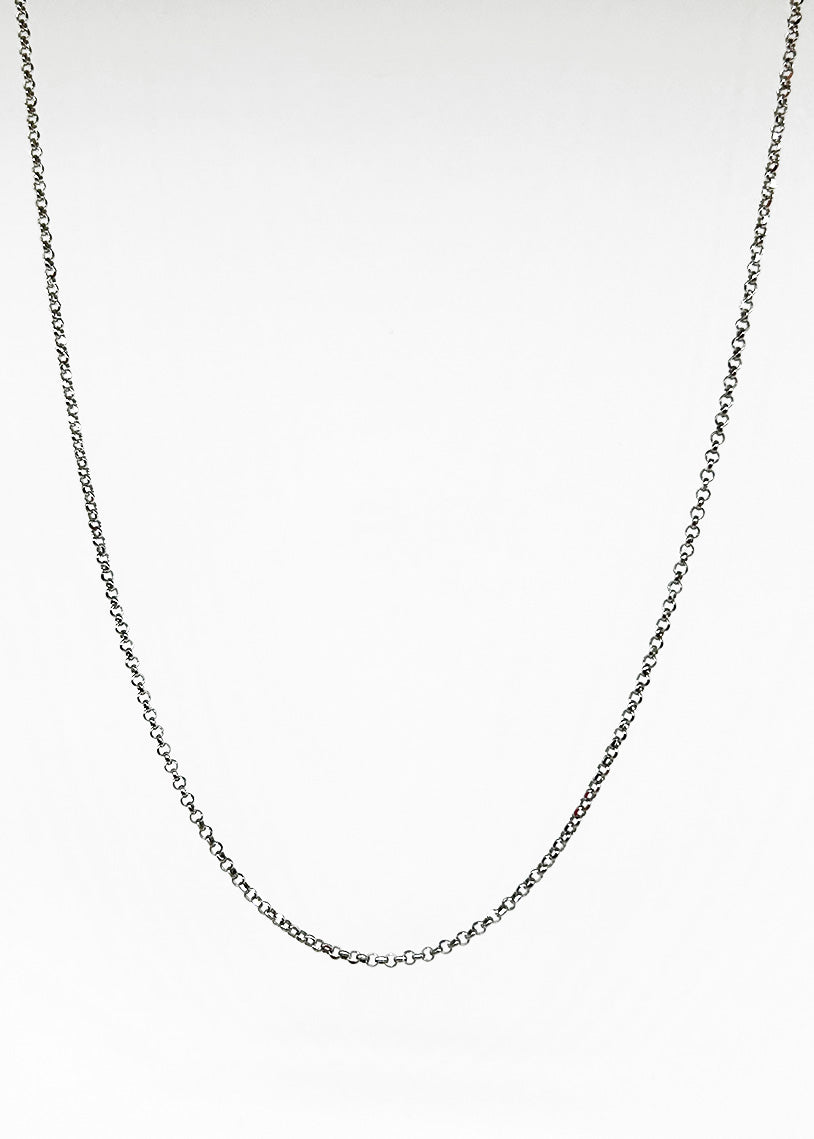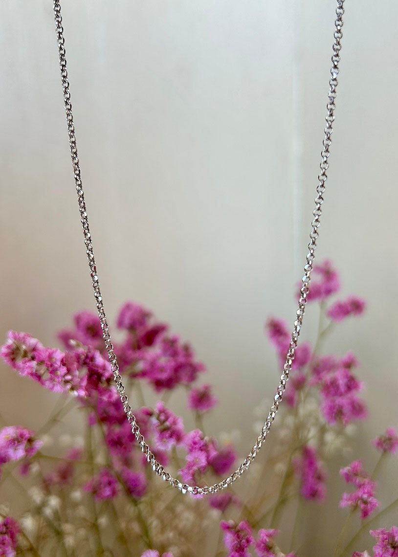 La catena Venus White è realizzata in argento 925 con finitura galvanica in rodio, offrendo una combinazione di robustezza e brillantezza elegante. Il design rolò, classico e sofisticato, valorizza ogni look con un tocco di raffinatezza senza tempo.