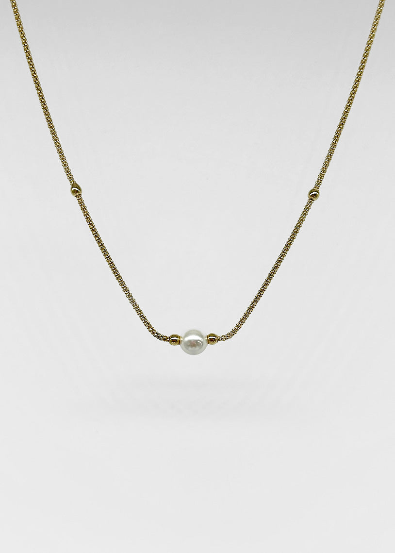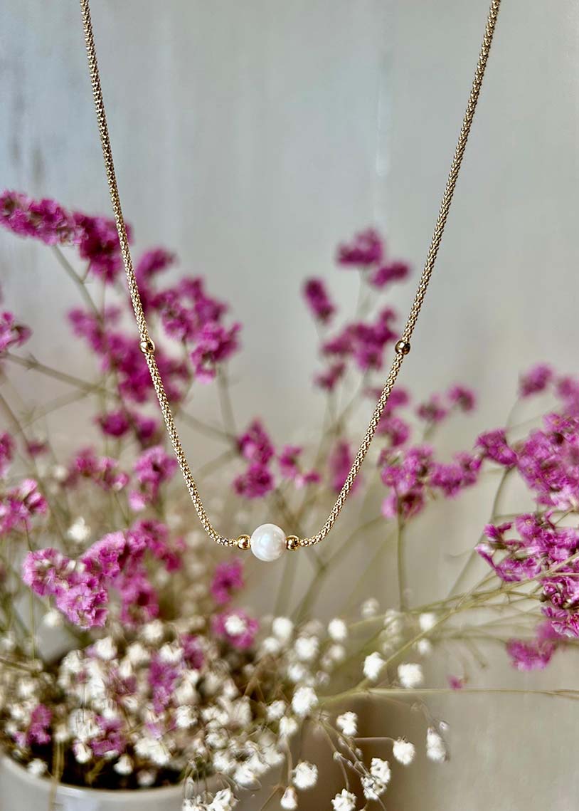 La collana Coco si distingue per la sua eleganza discreta, grazie alla singola perla sintetica che ne costituisce il punto focale. La maglia, ispirata allo stile Fope, è realizzata con una lavorazione raffinata e una finitura galvanica oro che ne esalta la lucentezza e la resistenza nel tempo. Questo gioiello unisce design contemporaneo e qualità artigianale, rendendolo un accessorio versatile e sofisticato, perfetto per arricchire sia look quotidiani che outfit più formali con un tocco di classe senza tempo.