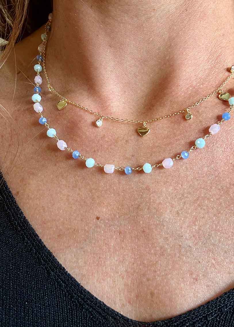 Il girocollo Elba è realizzato con perline sintetiche colorate che richiamano le tonalità caratteristiche dell’isola d’Elba: rosa, azzurro chiaro e blu, evocando la bellezza del mare. La finitura in galvanica gold aggiunge un tocco di eleganza e garantisce una brillantezza duratura. Questo gioiello unisce colori vivaci e design raffinato, ideale per chi desidera un accessorio distintivo e versatile, perfetto per arricchire ogni outfit con un richiamo sofisticato alla natura e al fascino mediterraneo.