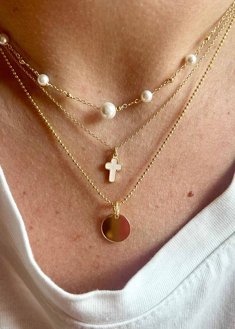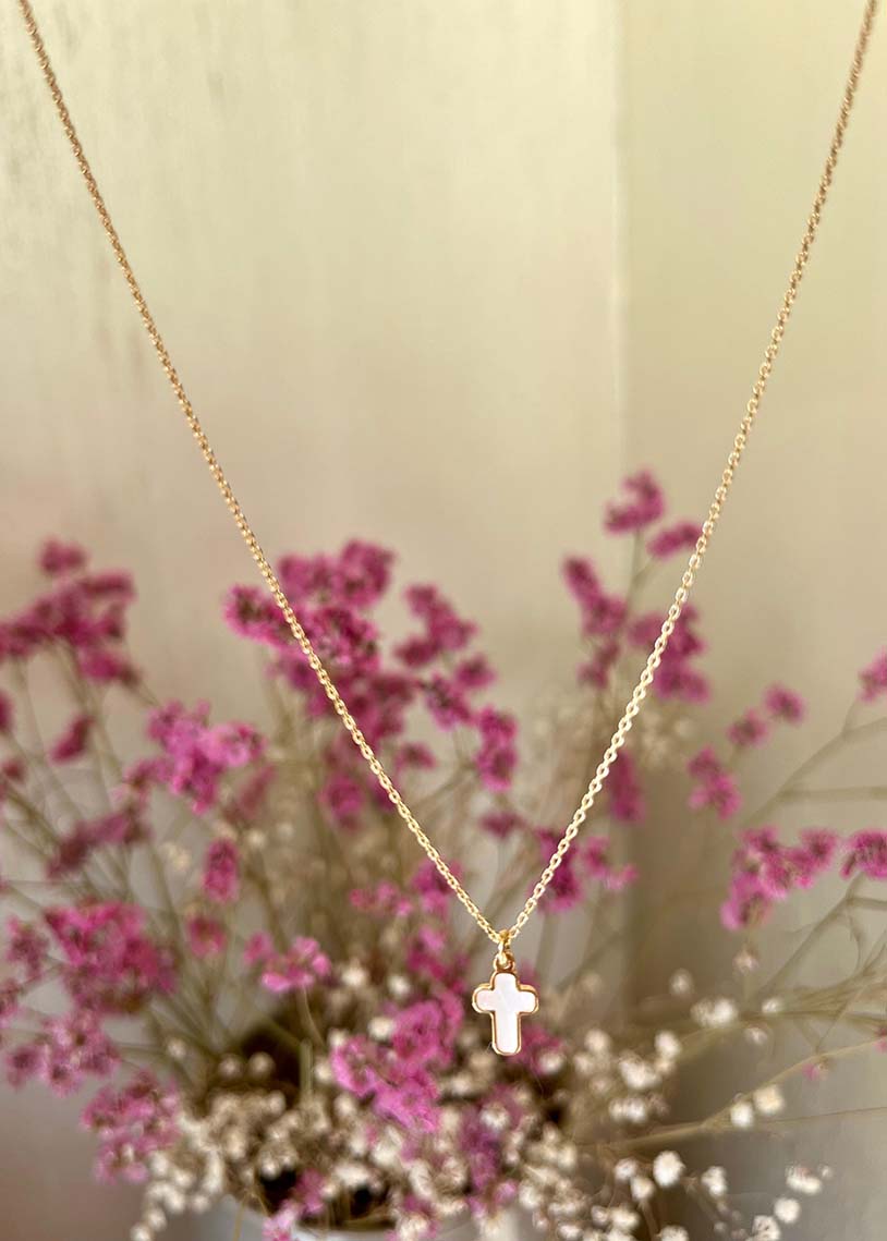 Questa collana Frenky presenta una croce centrale elegante in madreperla, arricchita da una raffinata galvanica dorata che ne esalta la lucentezza. Un accessorio di tendenza che unisce simbolismo e stile, ideale per chi cerca un gioiello sofisticato e contemporaneo. La qualità dei materiali garantisce durata e un aspetto sempre impeccabile.
