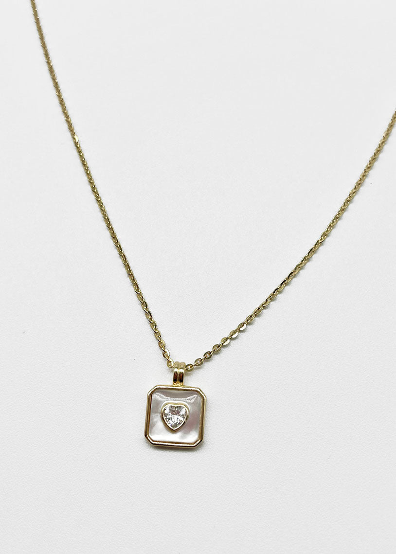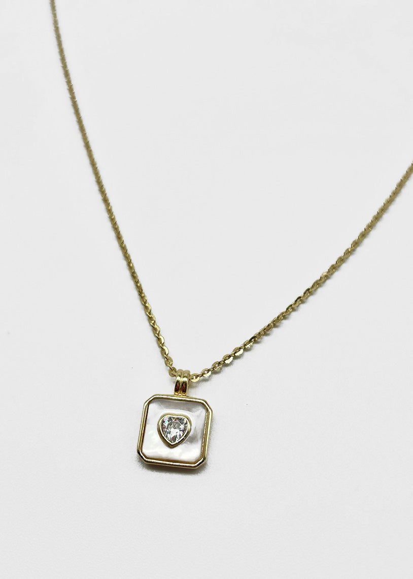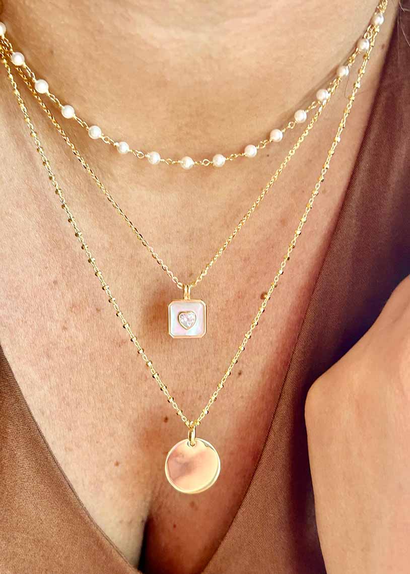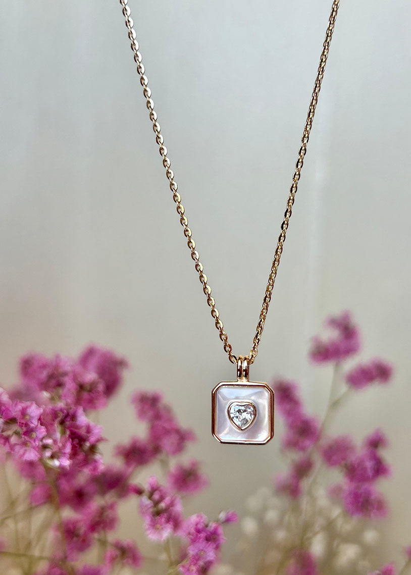La collana Marilyn si distingue per il suo elemento centrale realizzato in madreperla in cui è incastonato un cuore, che cattura la luce con delicatezza e dona un fascino naturale. La finitura galvanica in oro arricchisce il design con un tocco di lusso discreto, esaltando l’eleganza romantica e sofisticata del gioiello. Perfetta per chi cerca un accessorio che unisca raffinatezza e sentimento, la collana Marilyn si adatta con facilità sia a look quotidiani sia a occasioni speciali, offrendo un dettaglio prezioso e senza tempo.