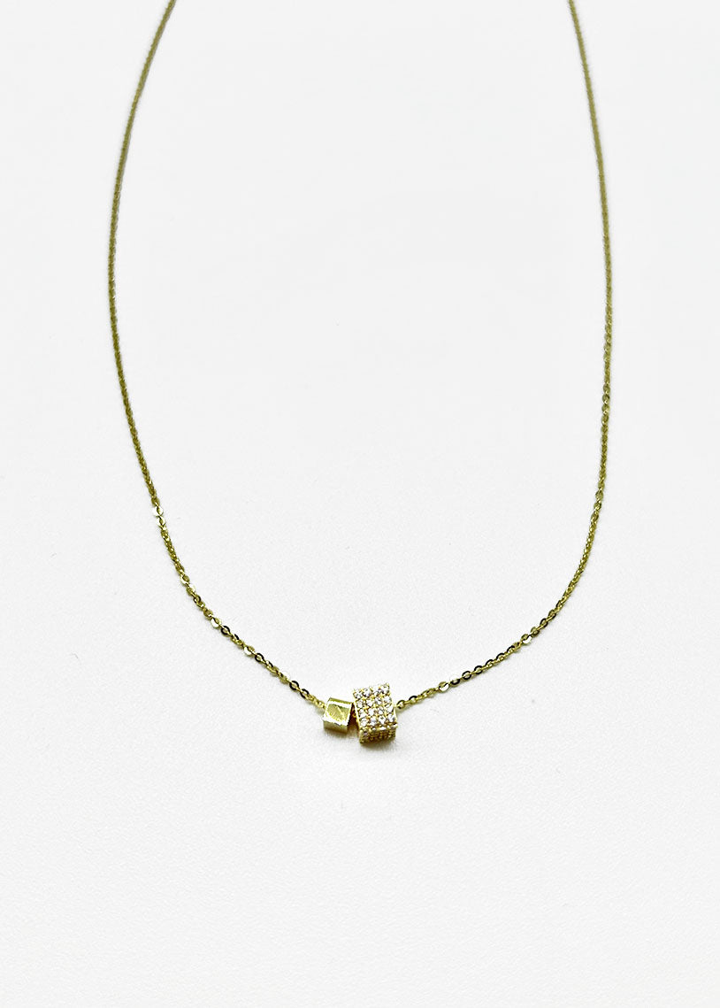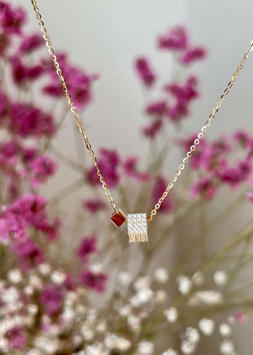 La collana Poker si distingue per la sua finitura in galvanica gold, che garantisce una brillantezza duratura e una resistenza superiore all’usura quotidiana. Il design sofisticato è valorizzato da un dado pavé impreziosito da cubic zirconia di alta qualità, che conferiscono un effetto scintillante e raffinato. Completa il gioiello un micro dado liscio, che aggiunge un tocco di eleganza minimalista, rendendo questa collana perfetta per chi cerca un accessorio contemporaneo e versatile, adatto a ogni occasione.