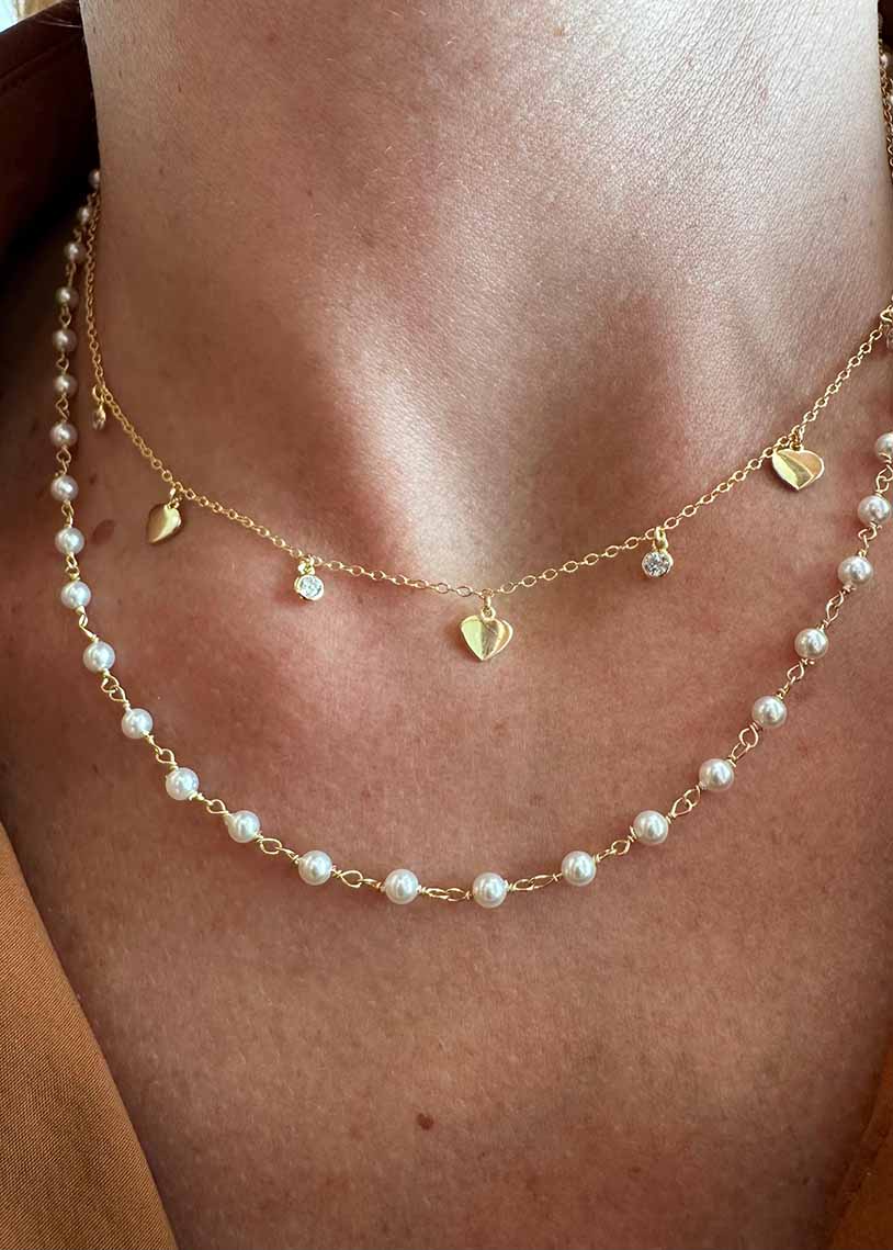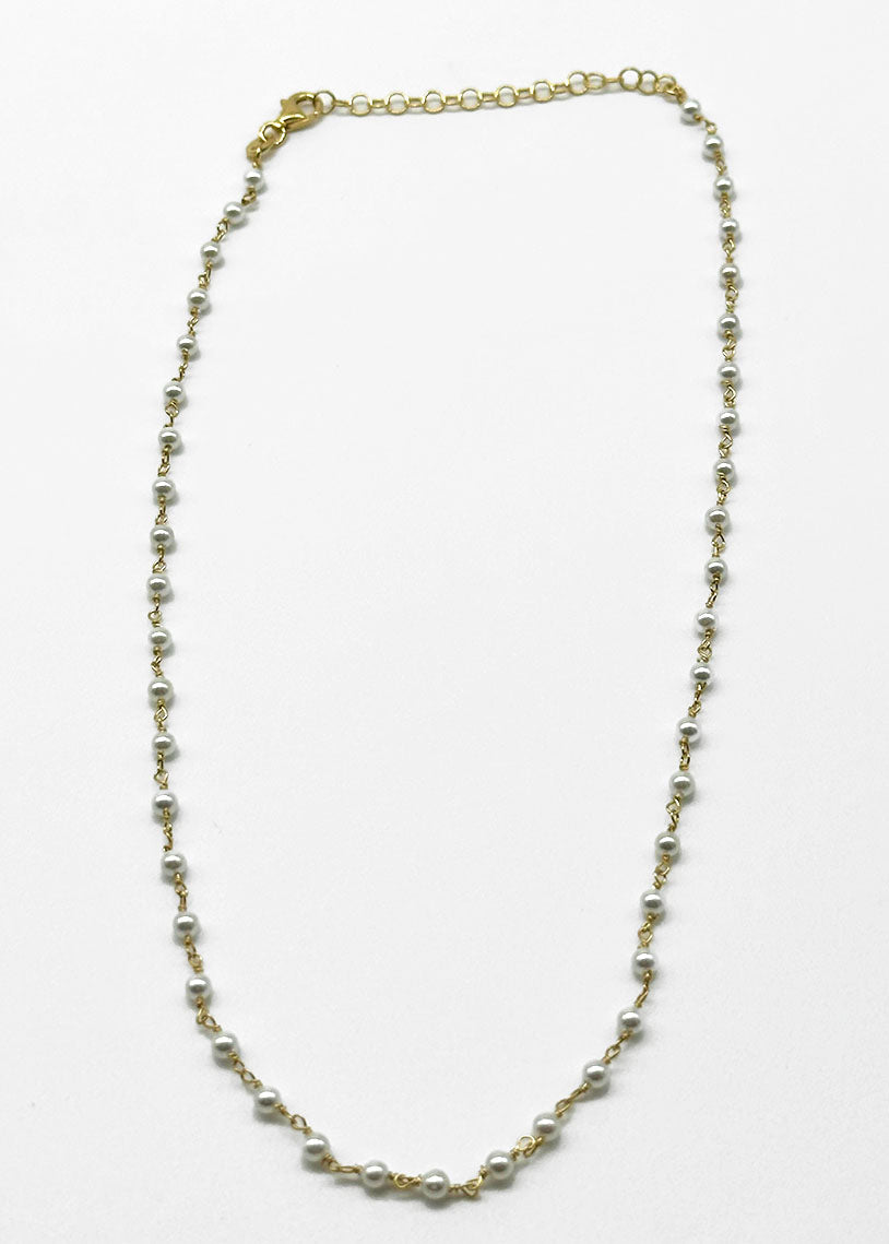Il girocollo Salina si distingue per le sue perline sintetiche bianche, luminose e raffinate, che richiamano la purezza e la delicatezza del sale dell’isola Salina. La finitura in galvanica gold aggiunge un tocco di eleganza sofisticata, esaltando la luminosità delle perline e conferendo al gioiello un aspetto prezioso e raffinato. Questo accessorio è ideale per chi cerca un design sobrio ma distintivo, capace di valorizzare ogni outfit con un’eleganza senza tempo.