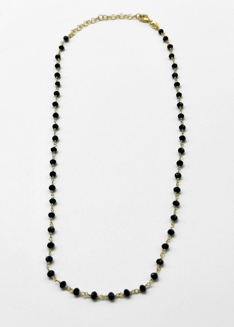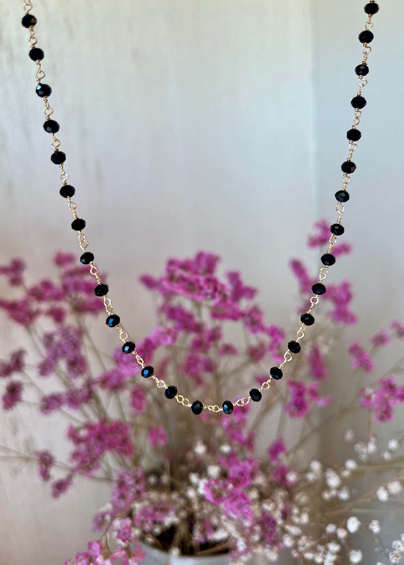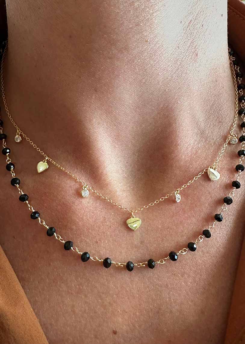 Il girocollo Stromboli presenta perline sintetiche nere che richiamano la forza e l’energia esplosiva del vulcano dell'omonima isola. La galvanica gold esalta la sua bellezza intensa, creando un gioiello audace e sofisticato, perfetto per chi desidera un accessorio distintivo e carico di carattere.