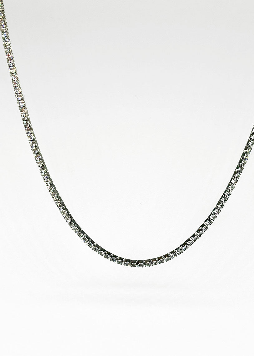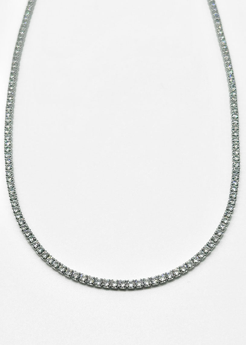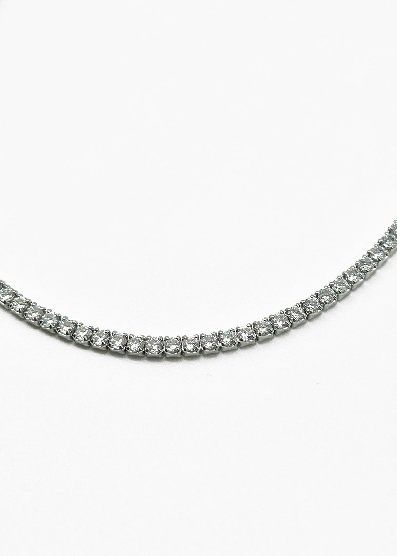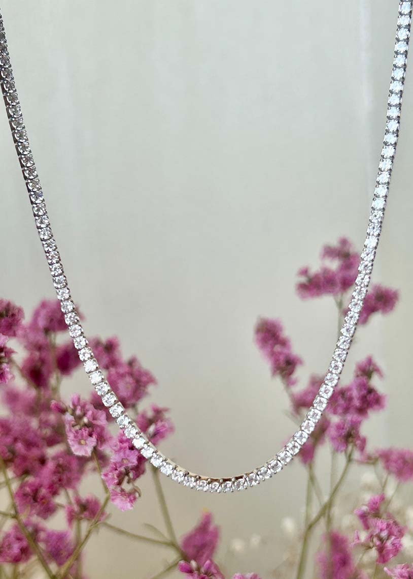Il girocollo choker Wimbledon con galvanica in rodio bianco unisce luminosità ed eleganza in un design raffinato ispirato allo stile tennis. La sua finitura brillante valorizza ogni dettaglio, rendendolo un accessorio sofisticato e versatile, perfetto per chi cerca un tocco di classe discreta ma distintiva.