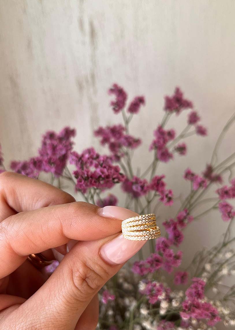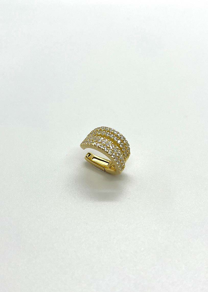 L’ear cuff Chic è composto da cinque file di cubic zirconia, impreziosito da una finitura in galvanica oro che ne esalta la brillantezza. Questo accessorio unisce eleganza e raffinatezza, ideale per chi cerca un gioiello sofisticato e di alta qualità.