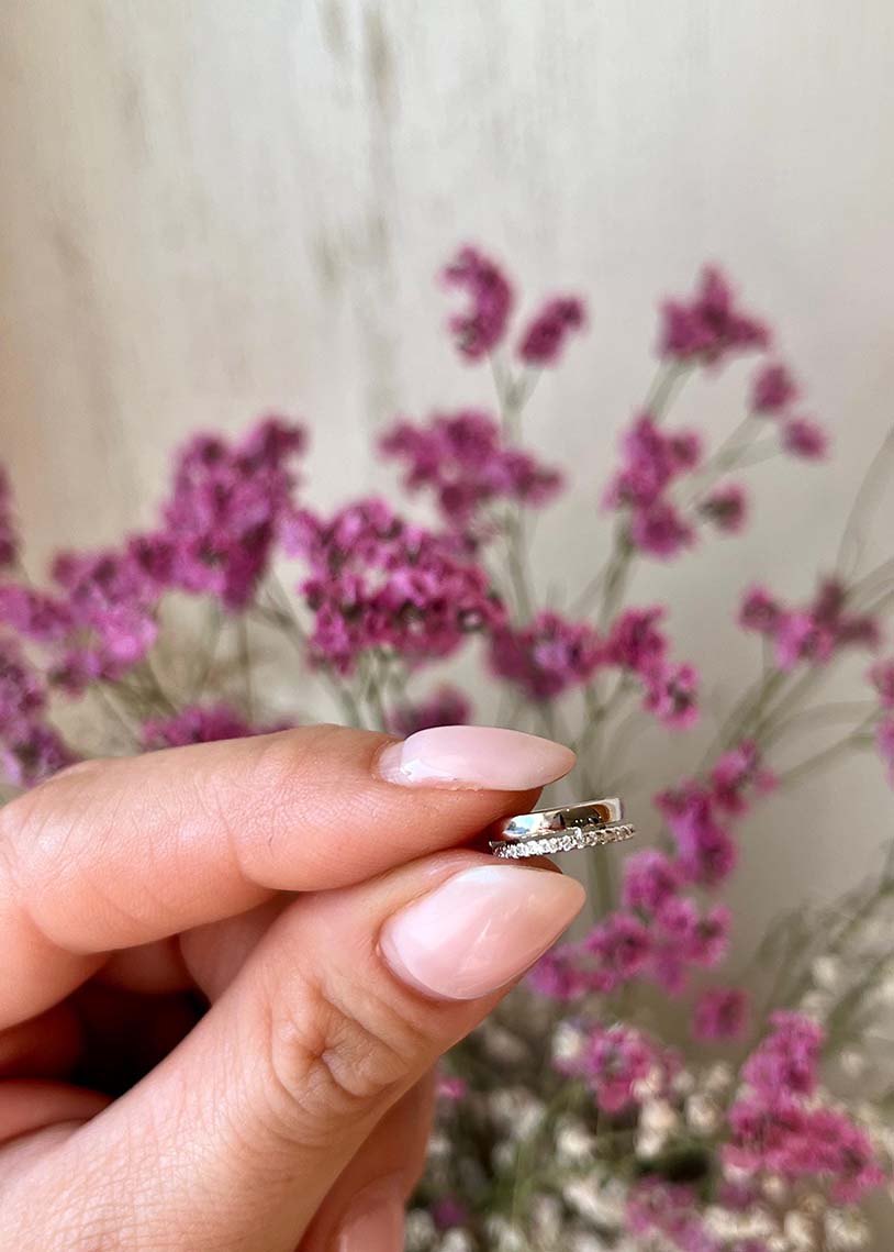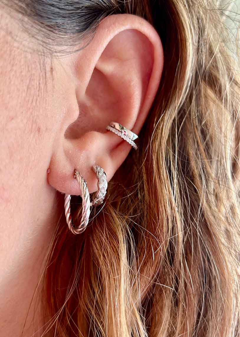 L’ear cuff Double White a doppio filo, decorato con cubic zirconia e rifinito con galvanica al rodio, combina un design elegante con una raffinata sofisticatezza. Le pietre brillanti offrono una luce delicata, mentre la finitura galvanica garantisce durata e una lucentezza costante. Questo accessorio versatile è ideale per chi cerca un gioiello raffinato che impreziosisca ogni look con un dettaglio di classe, senza richiedere fori.