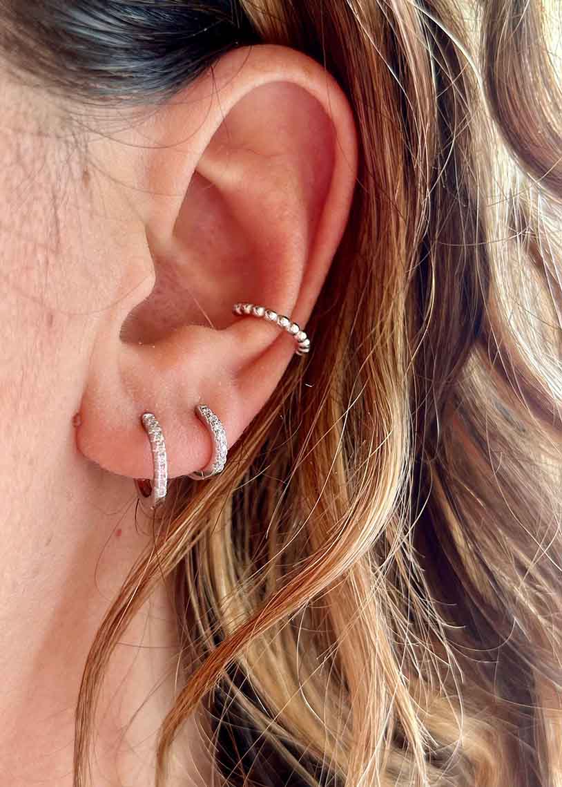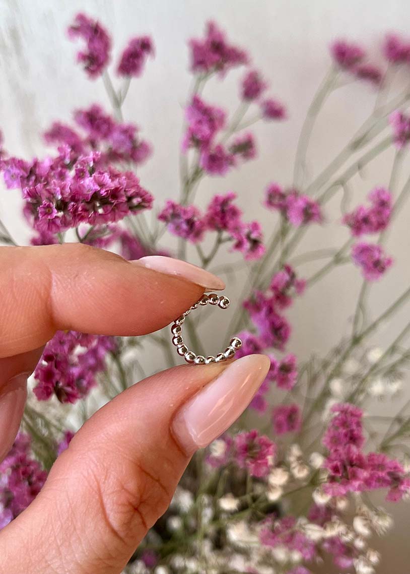 Flipper White è un ear cuff dal design contemporaneo e raffinato, impreziosito da una finitura galvanica in rodio di alta qualità. Le sue piccole palline aggiungono un delicato bagliore, perfetto per chi desidera un accessorio elegante e multifunzionale. Semplice da posizionare, esalta l’orecchio senza bisogno di fori, unendo estetica e funzionalità in un gioiello unico.