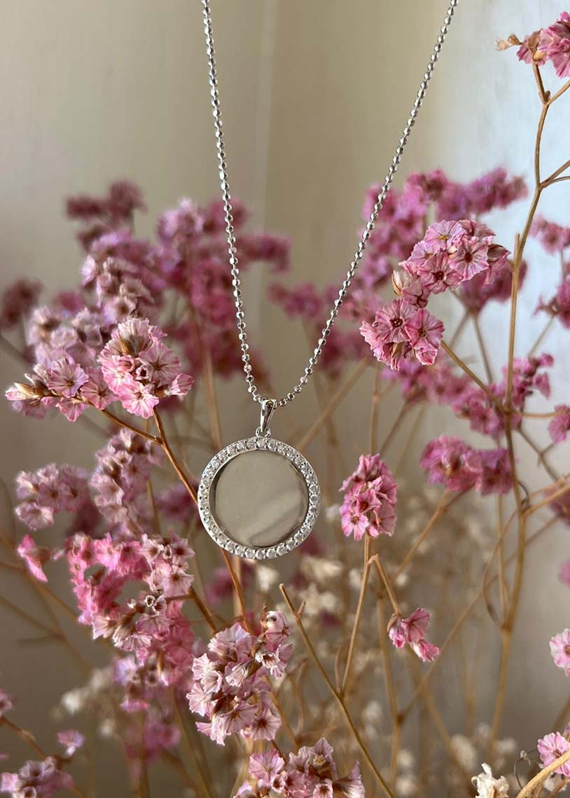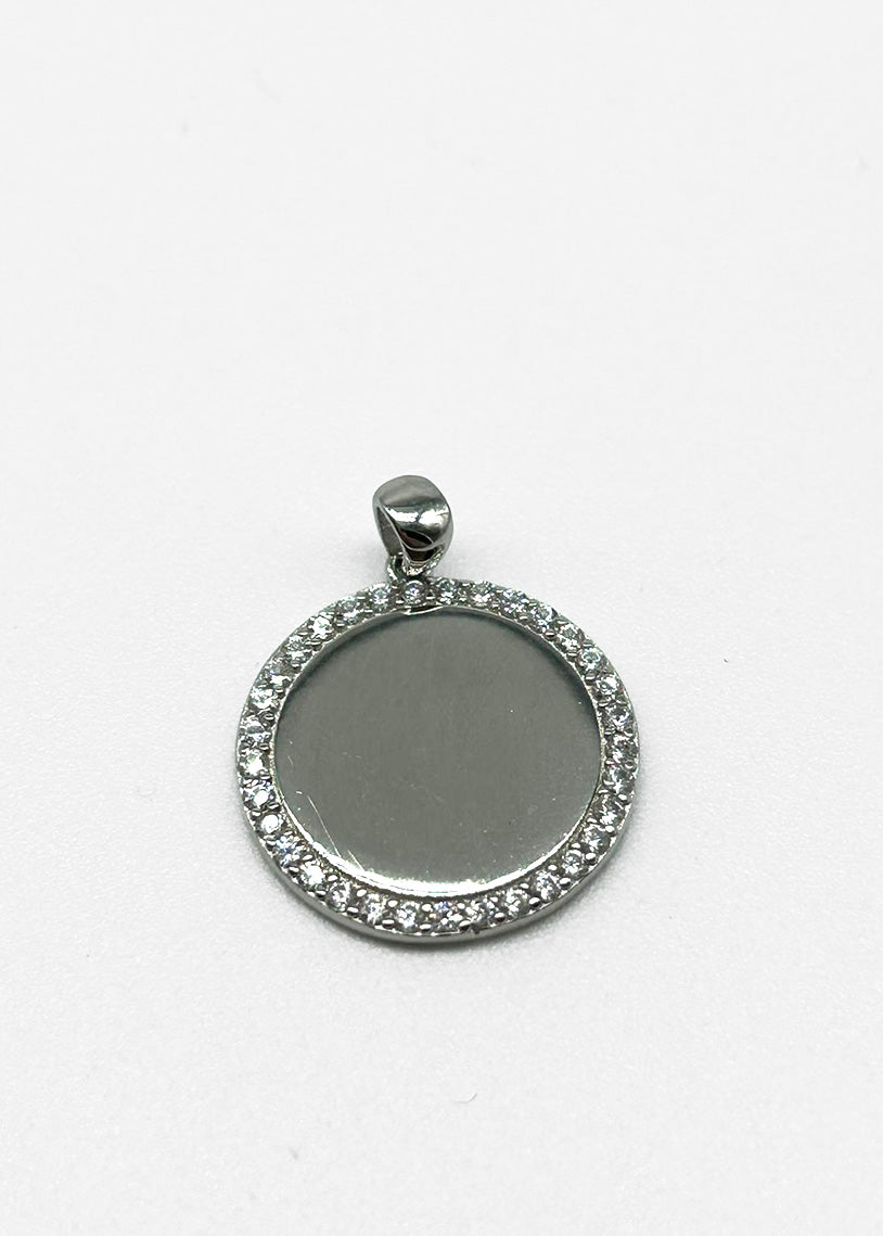 Placchetta Candy in argento con finitura rodio, impreziosita da un elegante bordo in pavè di cubic zirconia. Completamente personalizzabile mediante incisione, consente di immortalare messaggi, iniziali o motivi decorativi. Ideale come regalo emotivo o ricordo duraturo, viene realizzata entro 6 giorni lavorativi con attenzione artigianale e standard qualitativi elevati.