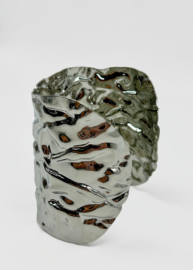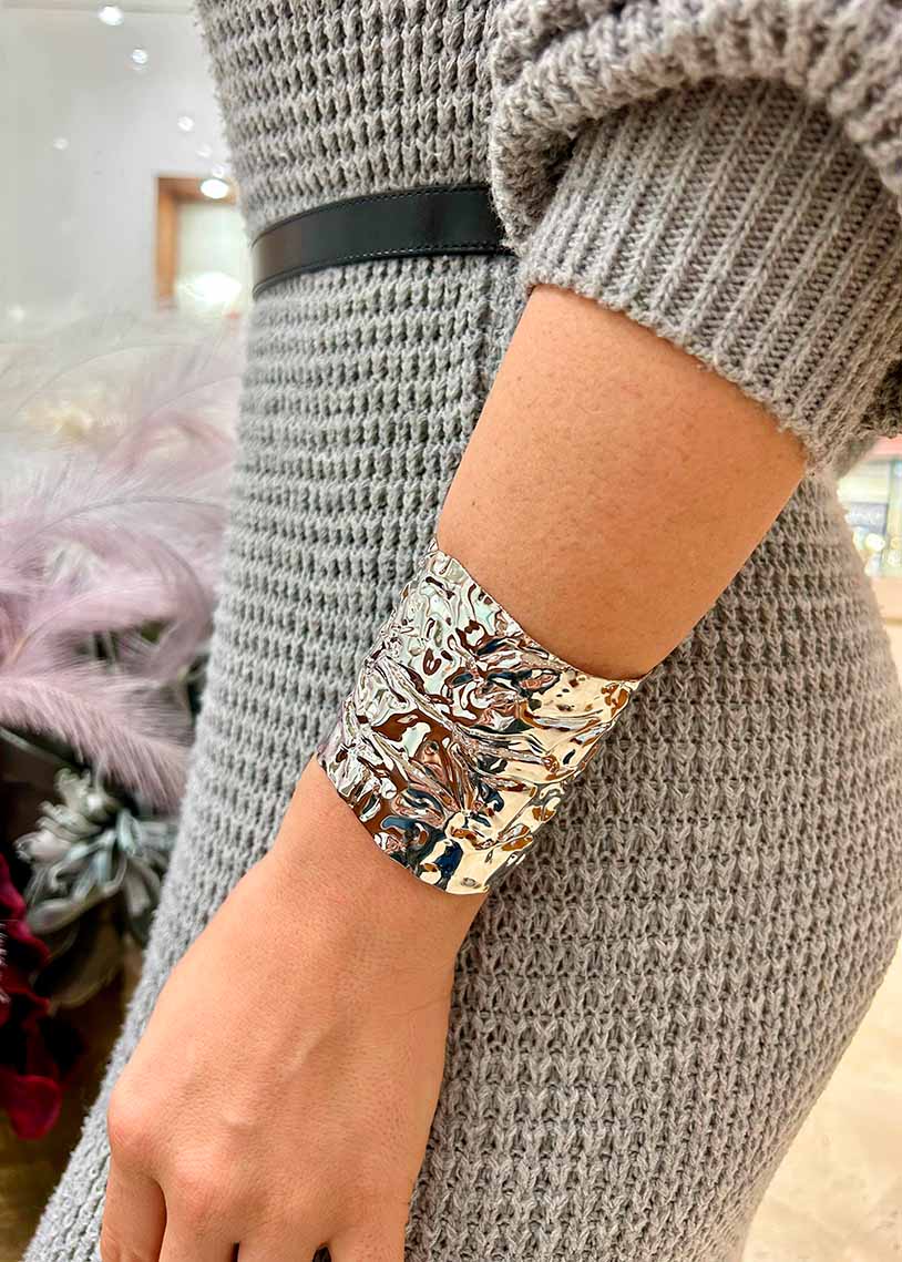 Braccialetto a schiava Cleopatra White, costruito in ottone con placcatura gold che assicura resistenza e luminosità durevole. La texture increspata caratterizza la superficie di ogni esemplare, generando profondità visiva che riflette la luce con eleganza e dona dinamismo al polso. Proporzioni raffinate e dettagli curati lo rendono adatto a molteplici contesti: ideale per momenti importanti o per arricchire l'abbigliamento di tutti i giorni con un'affermazione di raffinatezza consapevole.