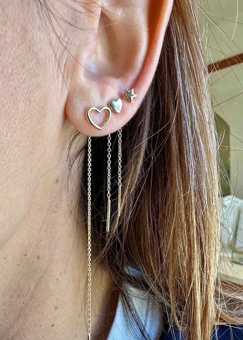 Il mono orecchino "Azzurra" si presenta come un accessorio singolare e affascinante, caratterizzato da un saliscendi elegante abbinato a una catenella e un delicato cuoricino in galvanica gold. La peculiarità costruttiva di questo orecchino risiede nella possibilità di infilare la catenella attraverso diversi fori dell'orecchio, offrendo molteplici opzioni di posizionamento e configurazione visiva. Tale flessibilità consente di adattare l'accessorio alle proprie preferenze estetiche e alla morfologia individuale, creando effetti che variano dal minimalista al più articolato. Il cuoricino aggiunge un tocco di romanticismo senza eccedere, mantenendo un equilibrio elegante tra delicatezza e modernità. Un accessorio pensato per chi apprezza estetica raffinata e funzionalità.