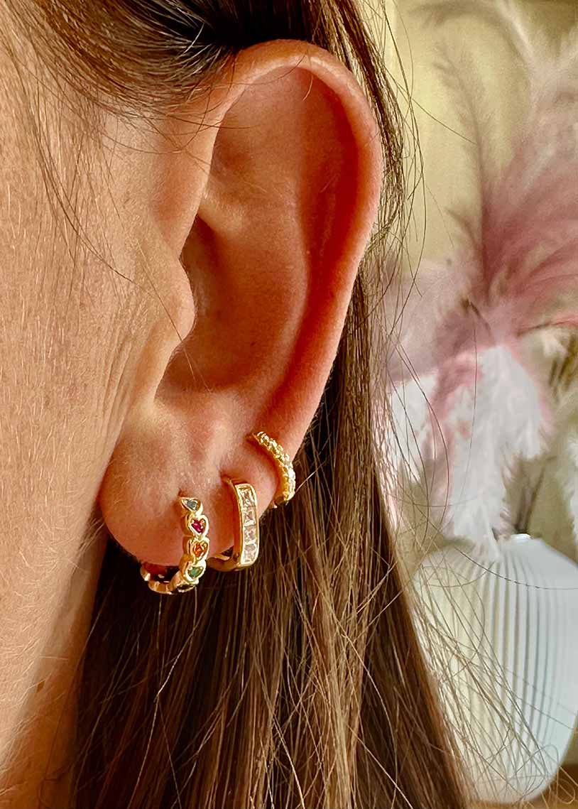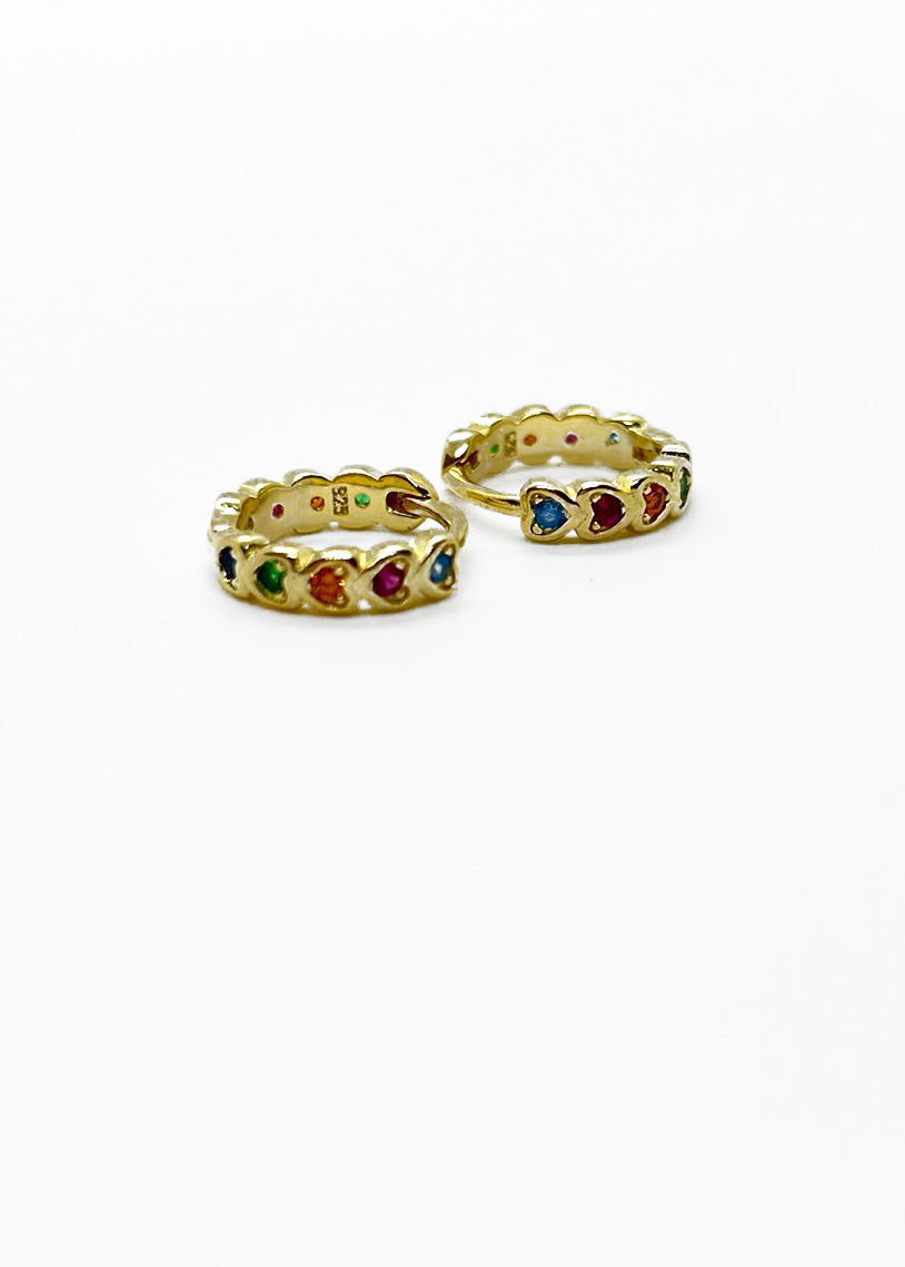 Gli orecchini Coachella Love si distinguono per i loro delicati cerchi a forma di cuore, impreziositi da colori vivaci che donano un tocco di allegria e originalità. La raffinata galvanica dorata conferisce loro una finitura elegante e duratura, garantendo resistenza e brillantezza nel tempo. Perfetti per chi cerca un accessorio sofisticato ma dal carattere giocoso.