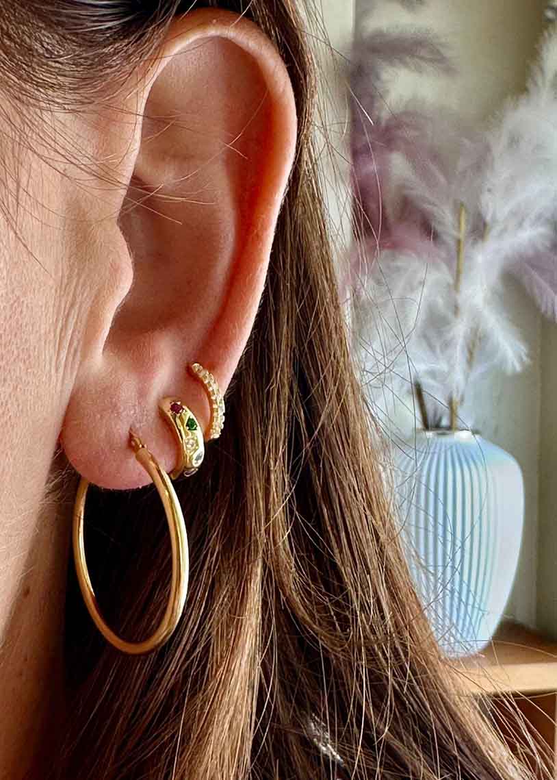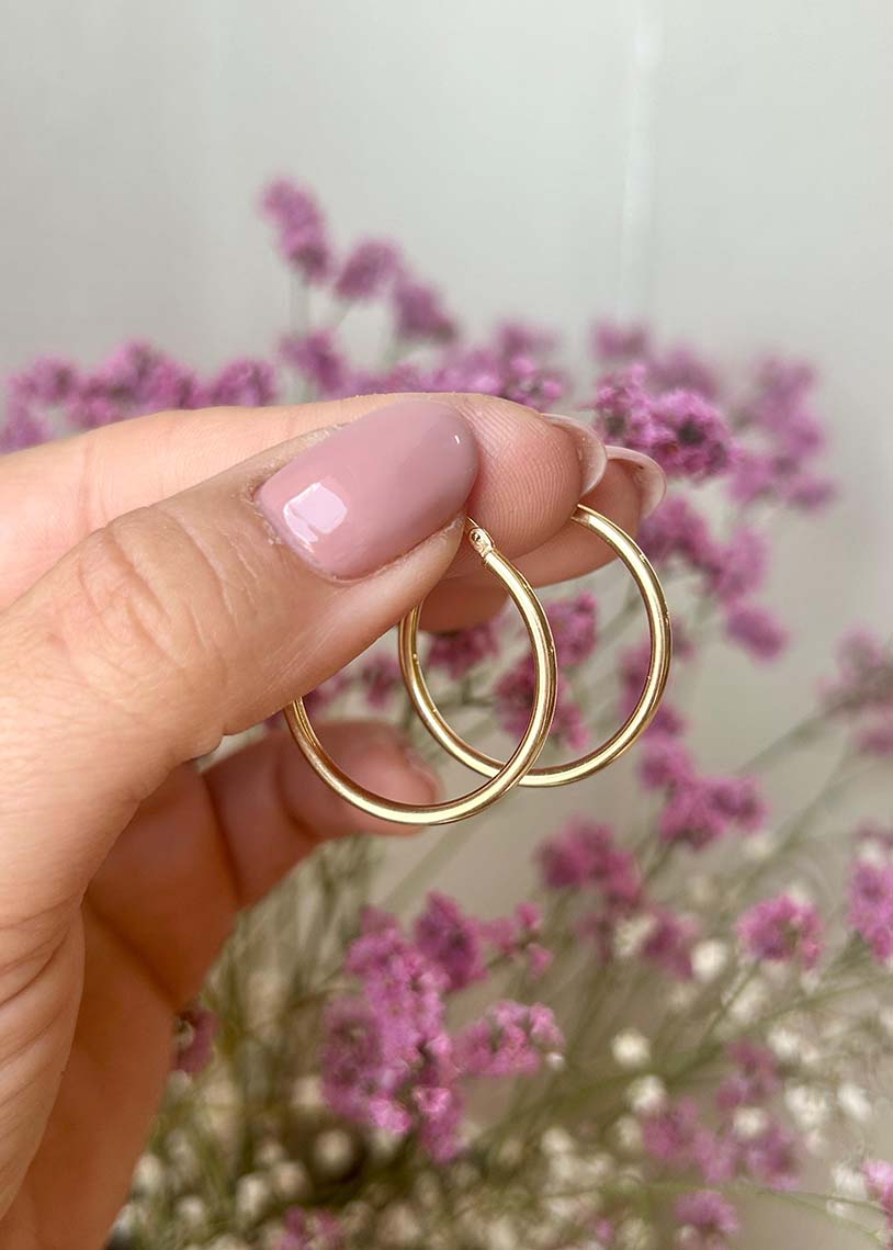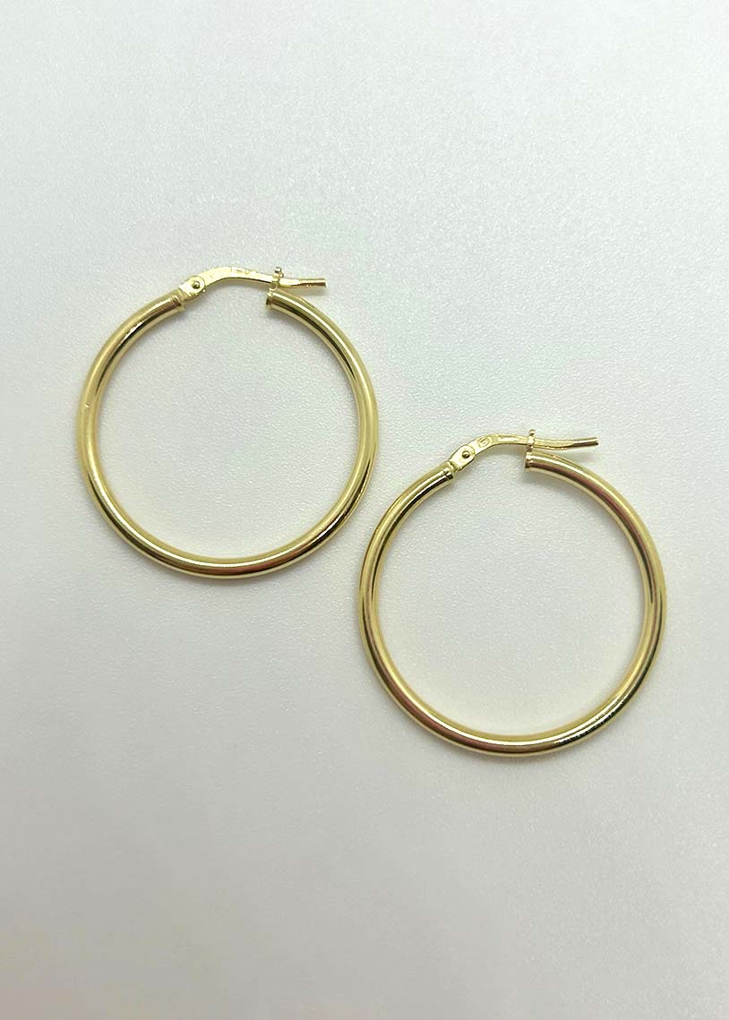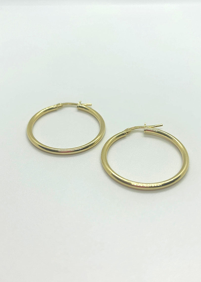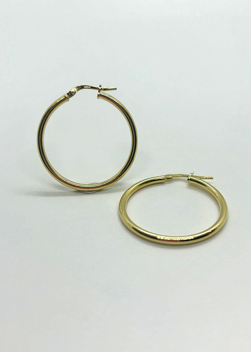 Gli orecchini Kenya sono caratterizzati da un cerchio liscio in canna fine con finitura galvanica oro, ideale per un look raffinato e discreto.