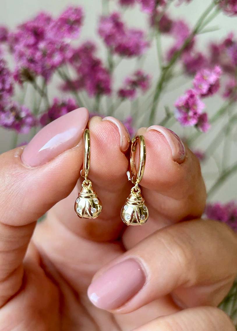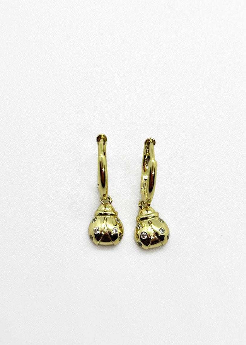 Gli orecchini Ladybug combinano un raffinato design a cerchietto con un delicato pendente a forma di coccinella, simbolo di fortuna e positività. La finitura in galvanica dorata di alta qualità conferisce al gioiello un aspetto luminoso e duraturo, ideale per chi cerca un accessorio elegante e distintivo. Perfetti per arricchire sia outfit quotidiani che occasioni speciali.