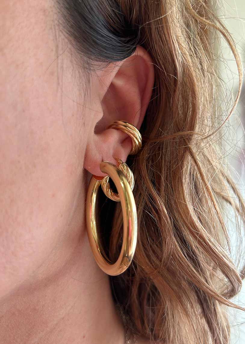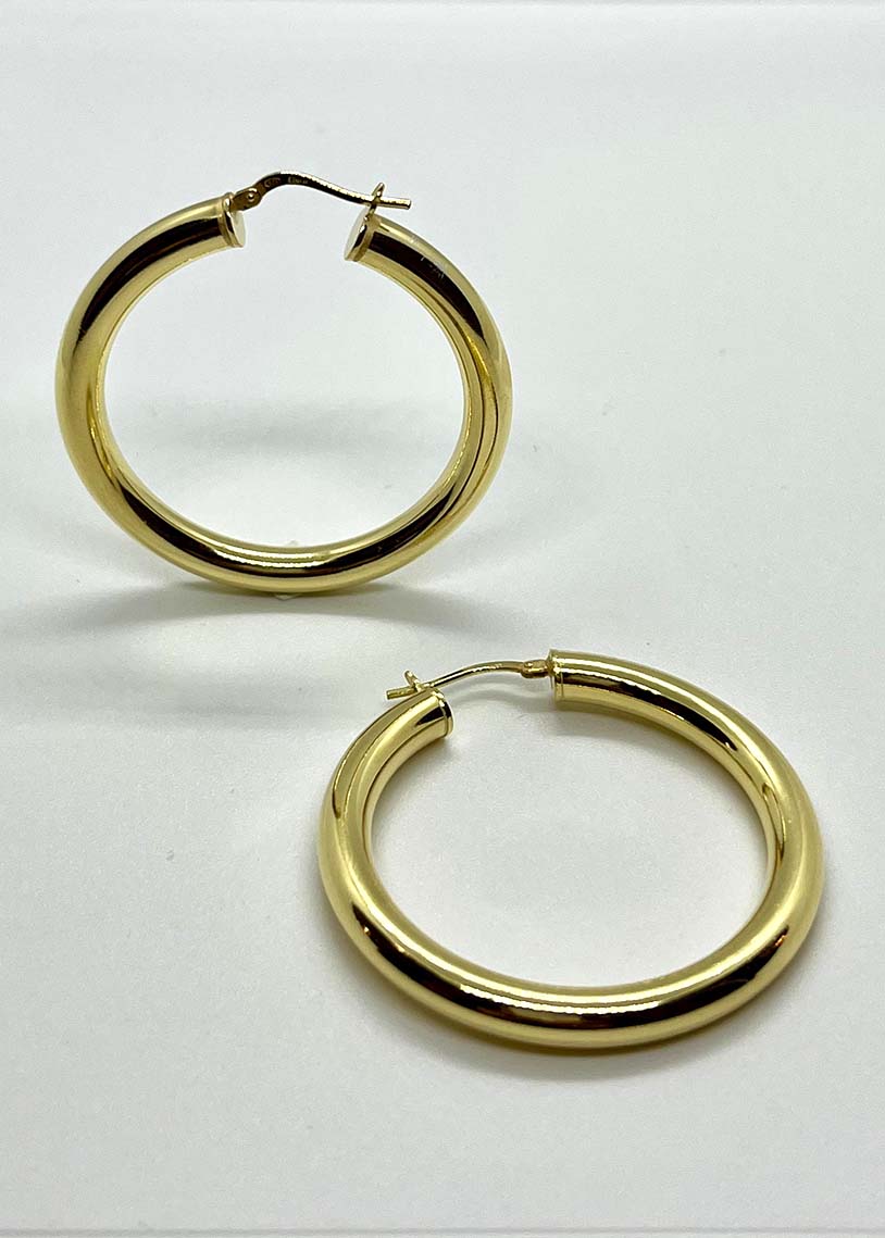 Il cerchio Tanzania, dalla superficie liscia e dalla finitura galvanica color oro, presenta una dimensione media con un diametro di 4,47 cm, ideale per un look sofisticato e distintivo.