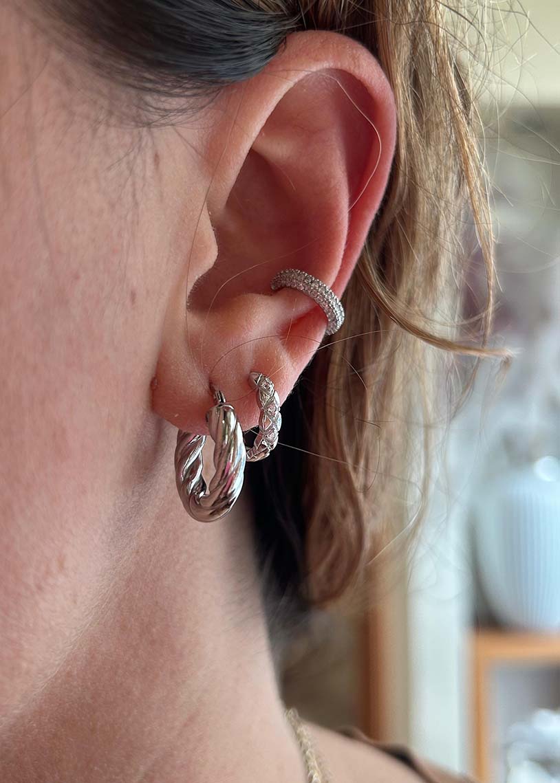 Togo White è un cerchio torchon dal diametro di 1,8 cm con finitura galvanica in rodio, che unisce una texture raffinata a una brillantezza duratura. La lavorazione a torchon conferisce un dettaglio distintivo, mentre il rivestimento in rodio assicura resistenza e luminosità nel tempo. Ideale per chi desidera un accessorio sofisticato e versatile, capace di arricchire ogni outfit con eleganza discreta e senza tempo.