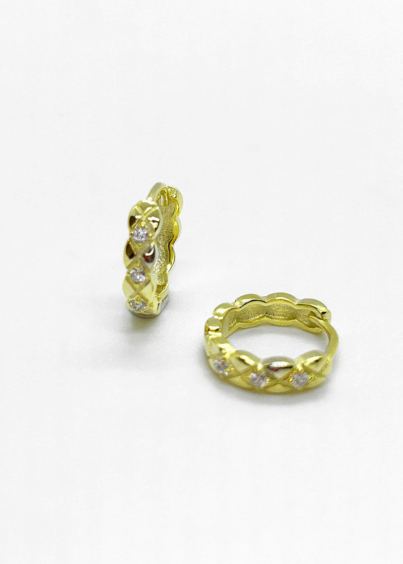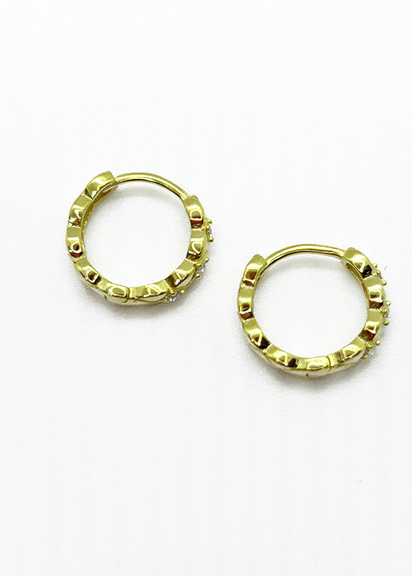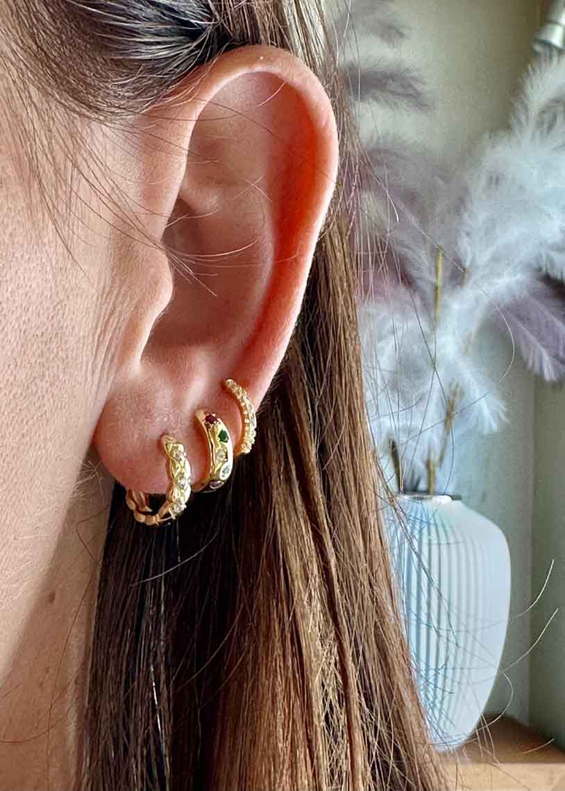 Gli orecchini Waves presentano un design a cerchio liscio realizzato in canna sottile con una raffinata finitura galvanica oro, perfetti per un’eleganza sobria e sofisticata.