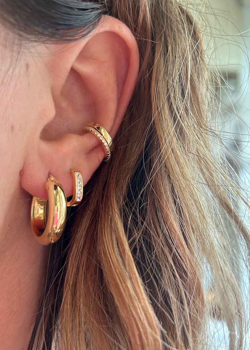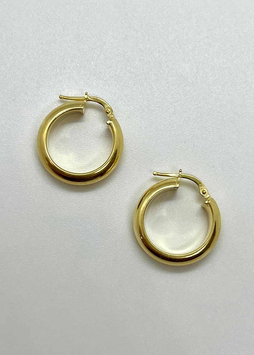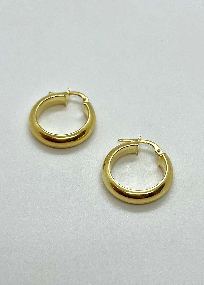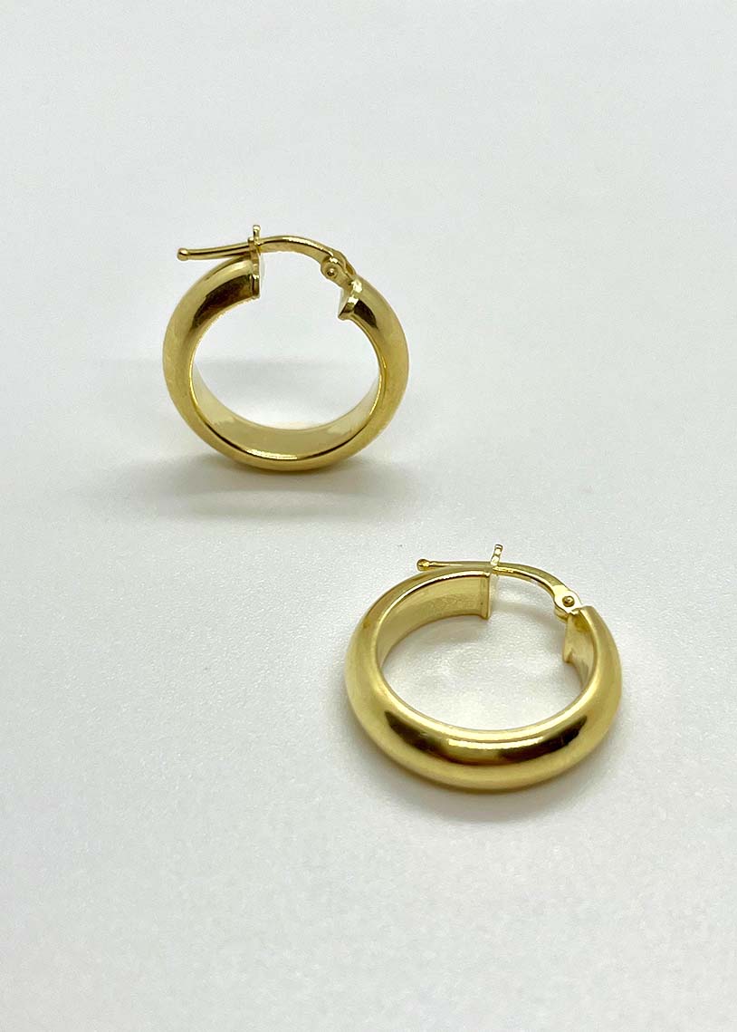 Il cerchio Zambia, con finitura galvanica oro e diametro di 2 cm, si distingue per la sua superficie liscia e il design essenziale, ideale per chi cerca un gioiello elegante e discreto.