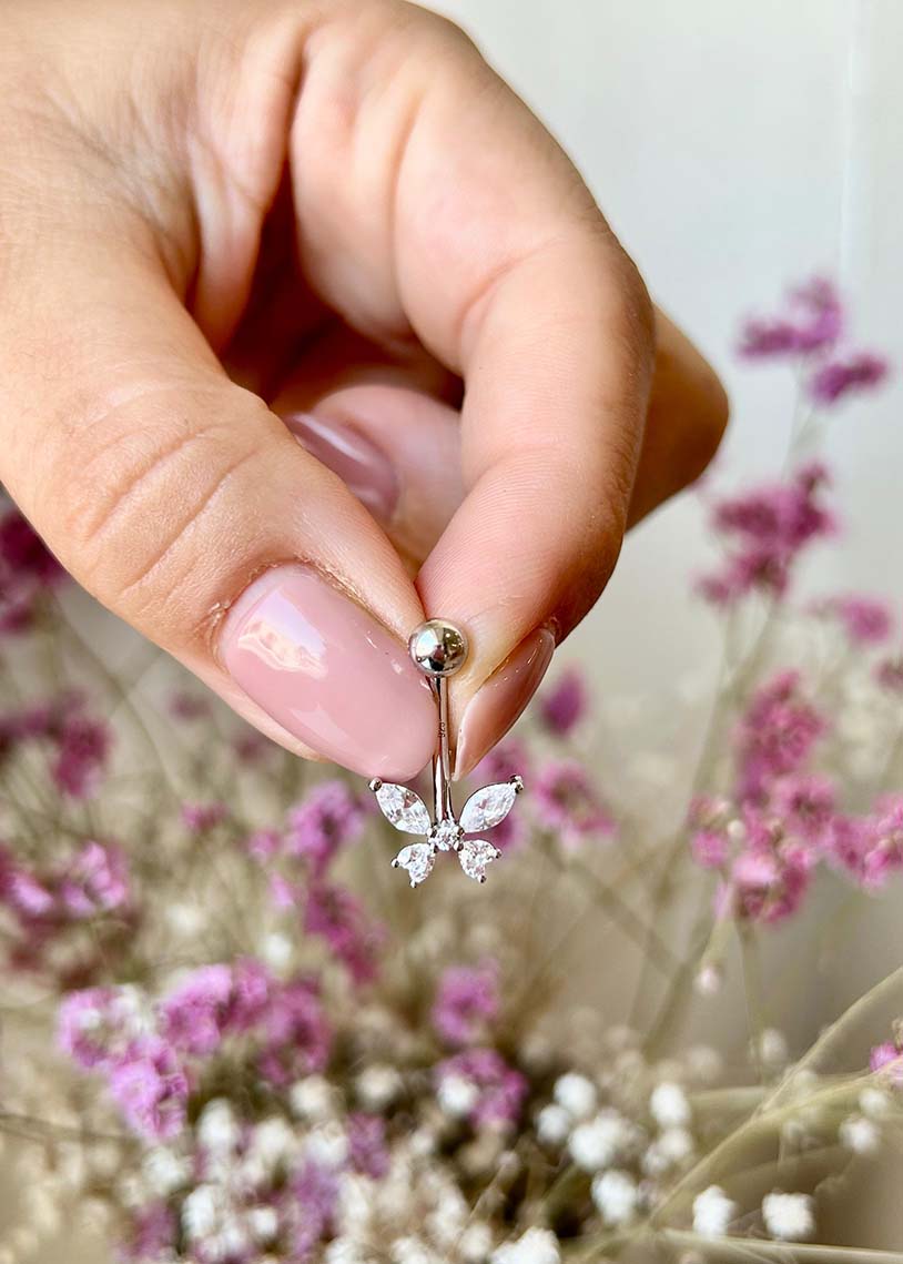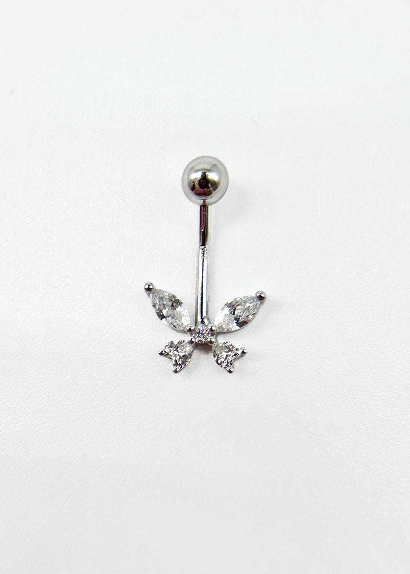 Il piercing per ombelico Butterfly è realizzato in argento 925 di alta qualità e presenta un raffinato gioiello a forma di farfalla, impreziosito da 5 cubic zirconia brillanti che donano un effetto luminoso e sofisticato. La chiusura anteriore con avvitamento garantisce una sicurezza ottimale durante l’uso, mentre la galvanica in rodio assicura una lucentezza duratura e una protezione efficace contro l’ossidazione. Estetica e funzionalità trovano un perfetto connubio.