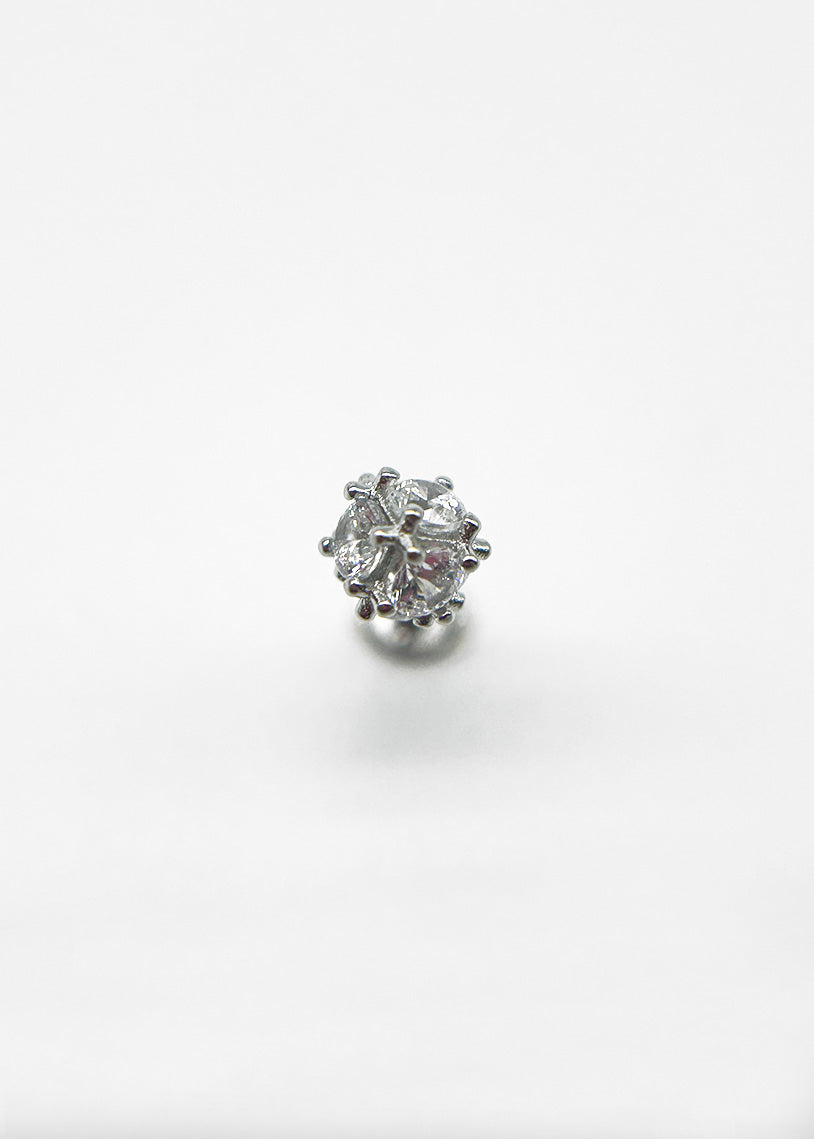 Il piercing Dandelion White è realizzato in argento 925 di alta qualità con una raffinata galvanica in rodio che ne garantisce resistenza e brillantezza nel tempo. Il gioiello, impreziosito da un cubic zirconia luminoso, offre un'eleganza discreta ma sofisticata. La chiusura anteriore a vite assicura una tenuta stabile e sicura, ideale per chi cerca un accessorio affidabile e confortevole da indossare quotidianamente. Questo piercing unisce design raffinato e funzionalità, perfetto per valorizzare ogni look con un tocco di classe.
