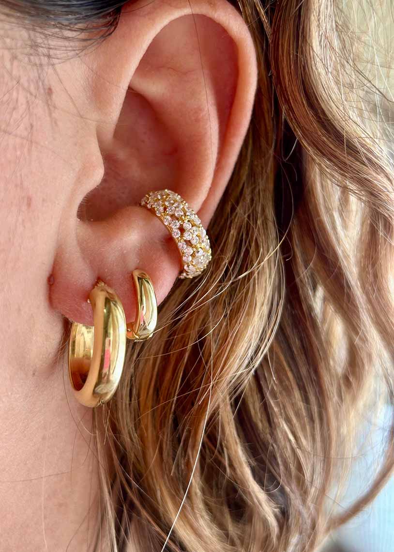 Bridgerton è un ear cuff caratterizzato da cubic zirconia di alta qualità, impreziosito da una finitura luminosa con galvanica in oro. Questo accessorio unisce eleganza e resistenza, garantendo un effetto brillante e duraturo, ideale per chi cerca un gioiello sofisticato e senza tempo.
