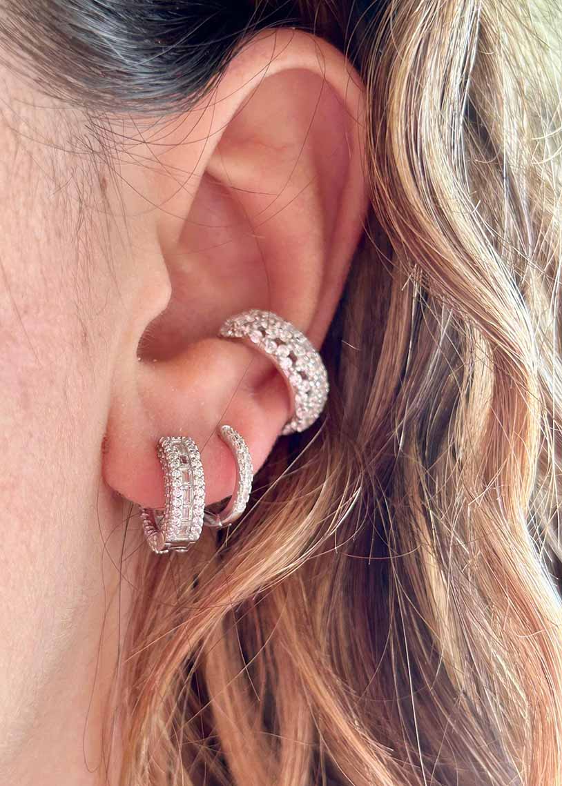 Bridgerton White è un ear cuff raffinato, impreziosito da cubic zirconia scintillanti e rifinito con una galvanica in rodio che ne esalta la luminosità. Questo accessorio elegante si adatta perfettamente a chi cerca un tocco di sofisticatezza discreta, garantendo durata e brillantezza nel tempo grazie alla qualità dei materiali utilizzati. Ideale per valorizzare ogni look con un dettaglio prezioso e senza tempo.