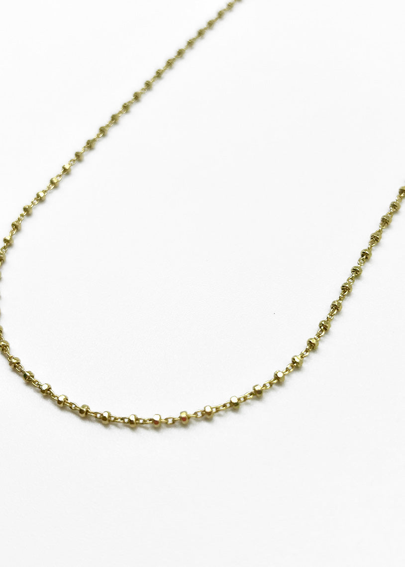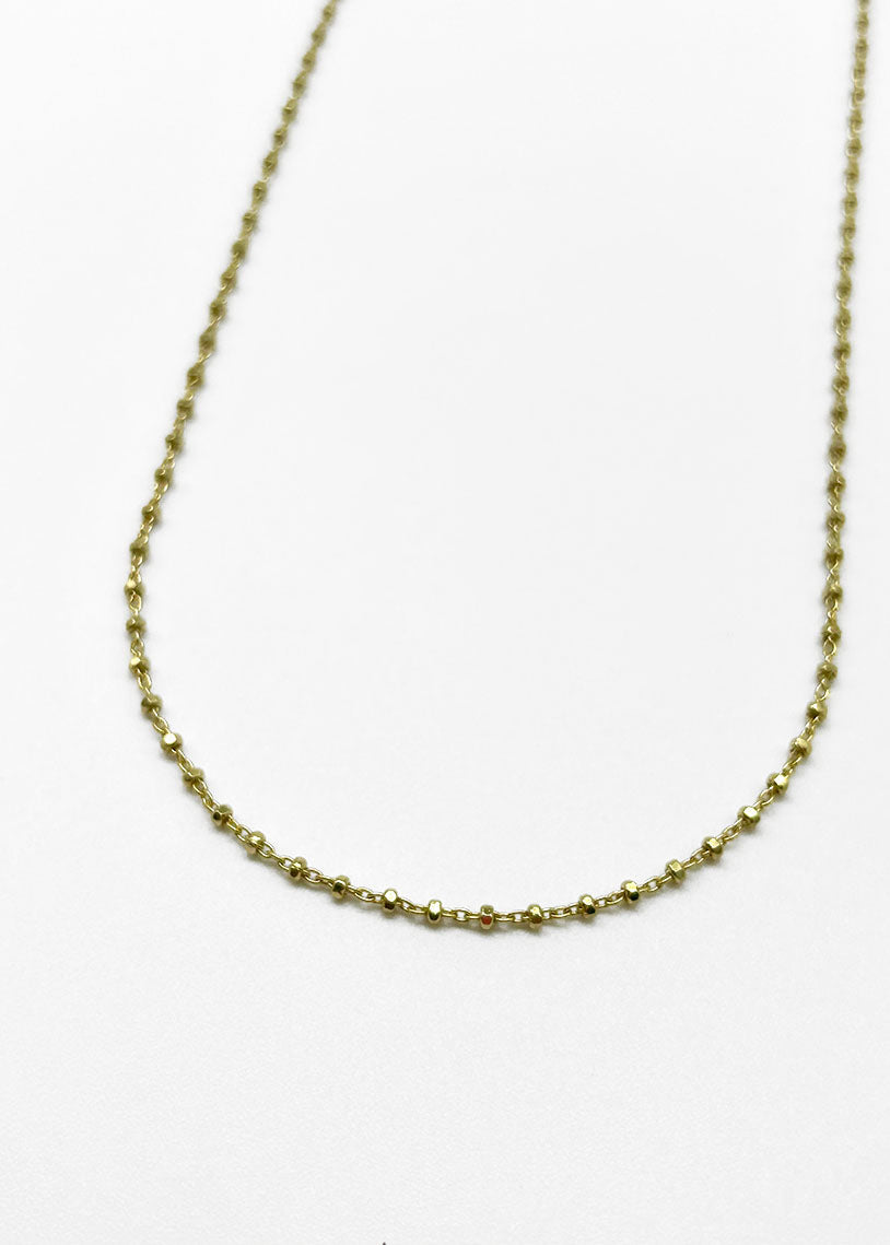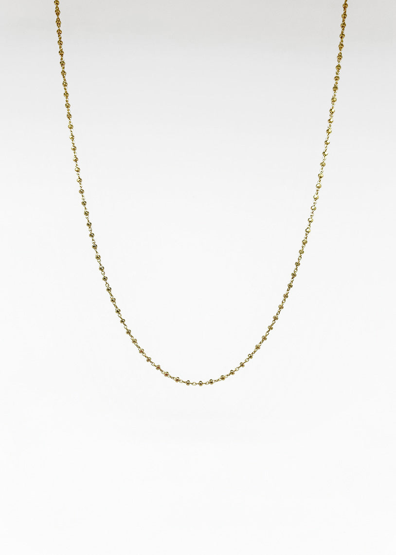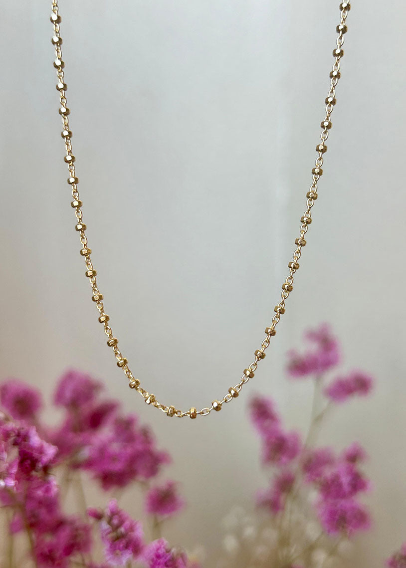La catena Calliope in argento 925 unisce eleganza e raffinatezza grazie alla sua maglia intrecciata, arricchita da sfere decorative sfaccettate in galvanica gold. Questo design sofisticato valorizza ogni outfit, offrendo un accessorio versatile e di alta qualità, perfetto per chi cerca un gioiello distintivo e duraturo.