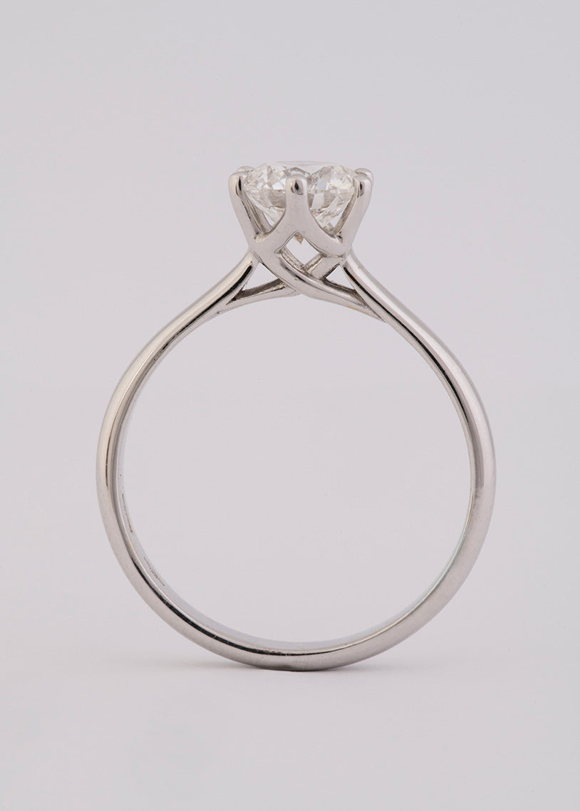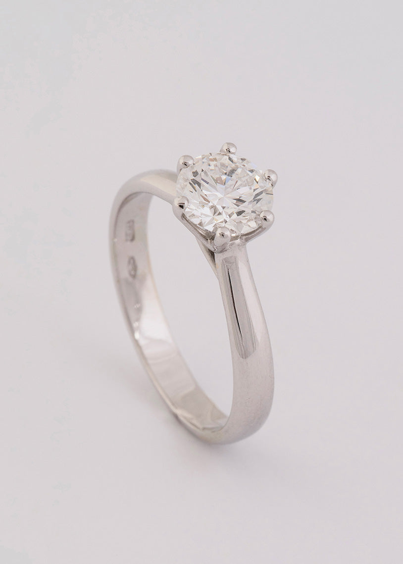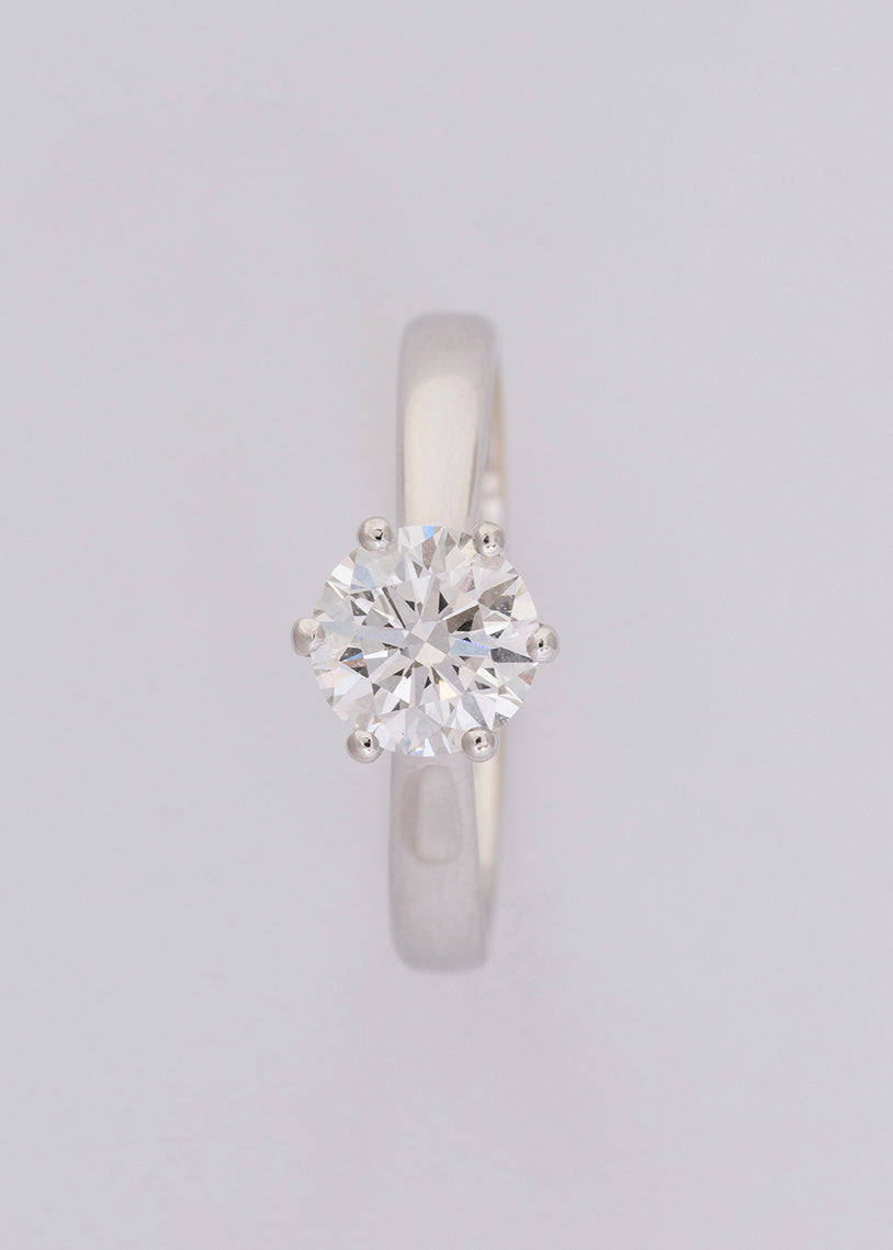 Il classico intramontabile: 1,03 kt di diamante Lab Grown su castone a sei griffes e gambo in oro bianco 18kt.
